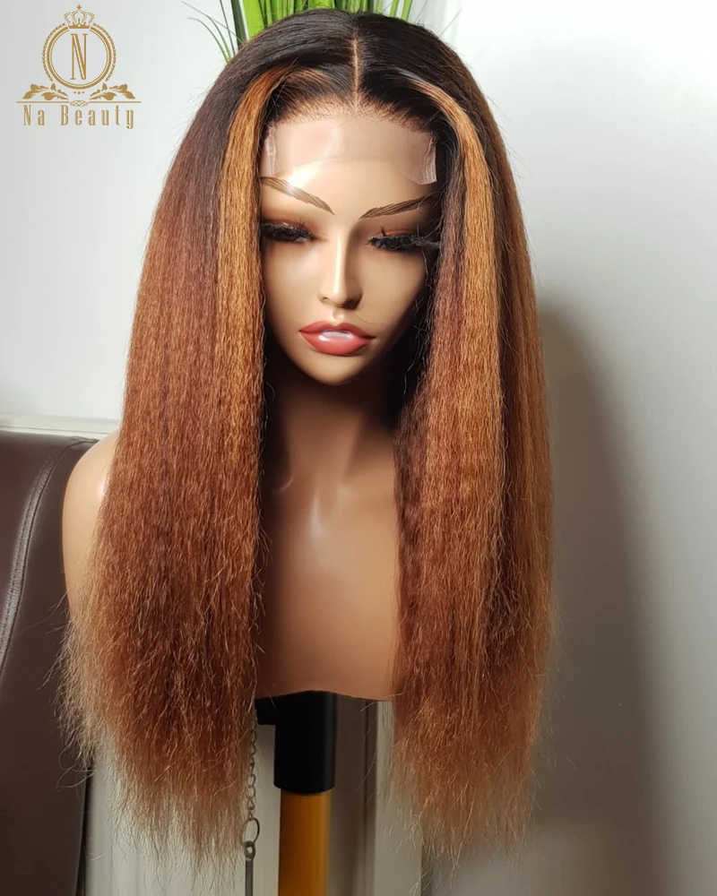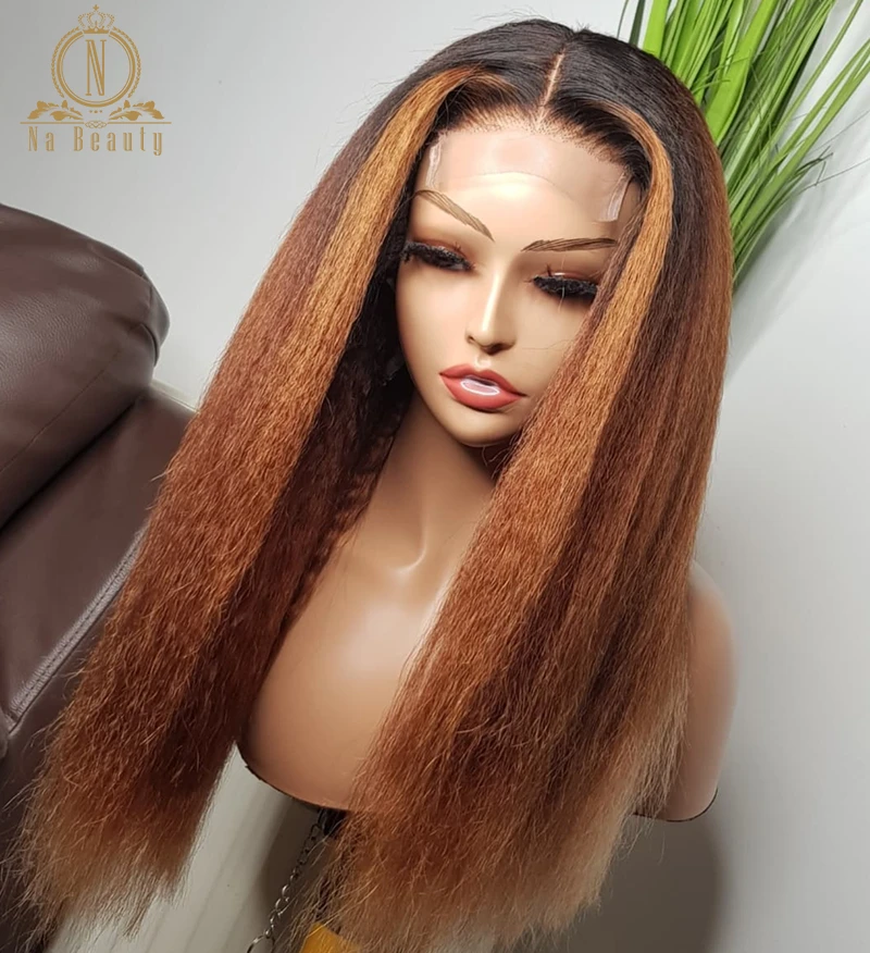 Курчавые прямые человеческие волосы парики хайлайтер Омбре цвет 13x6 кружевной фронтальный парик Preplucked для черных женщин Nabeauty 180 плотность