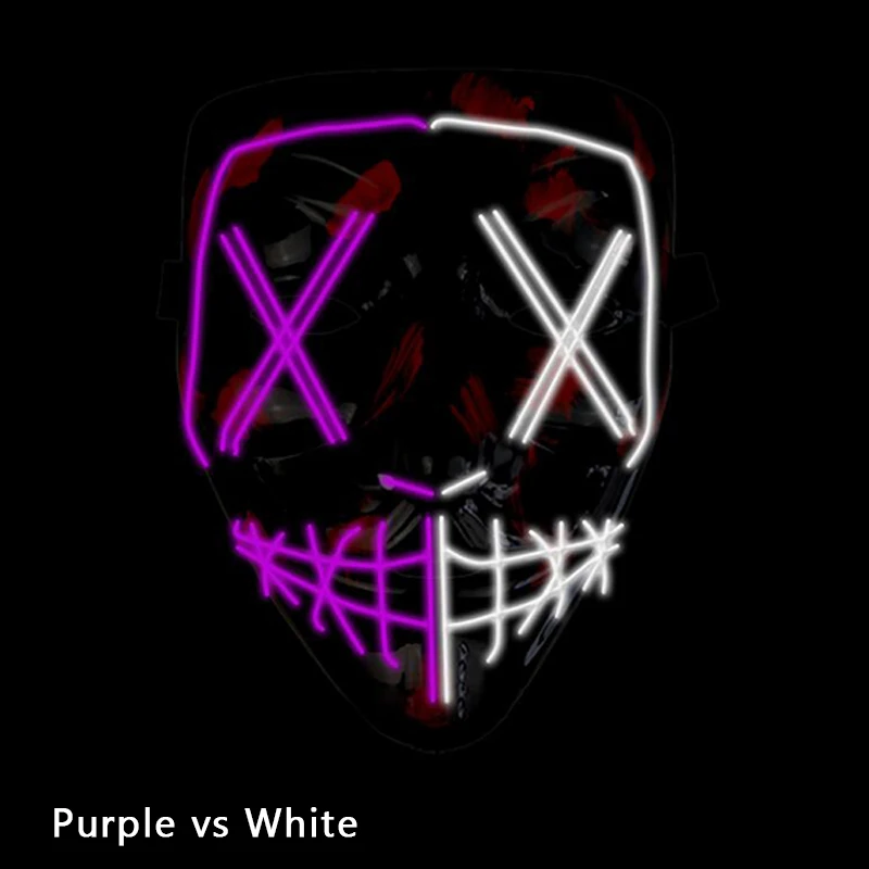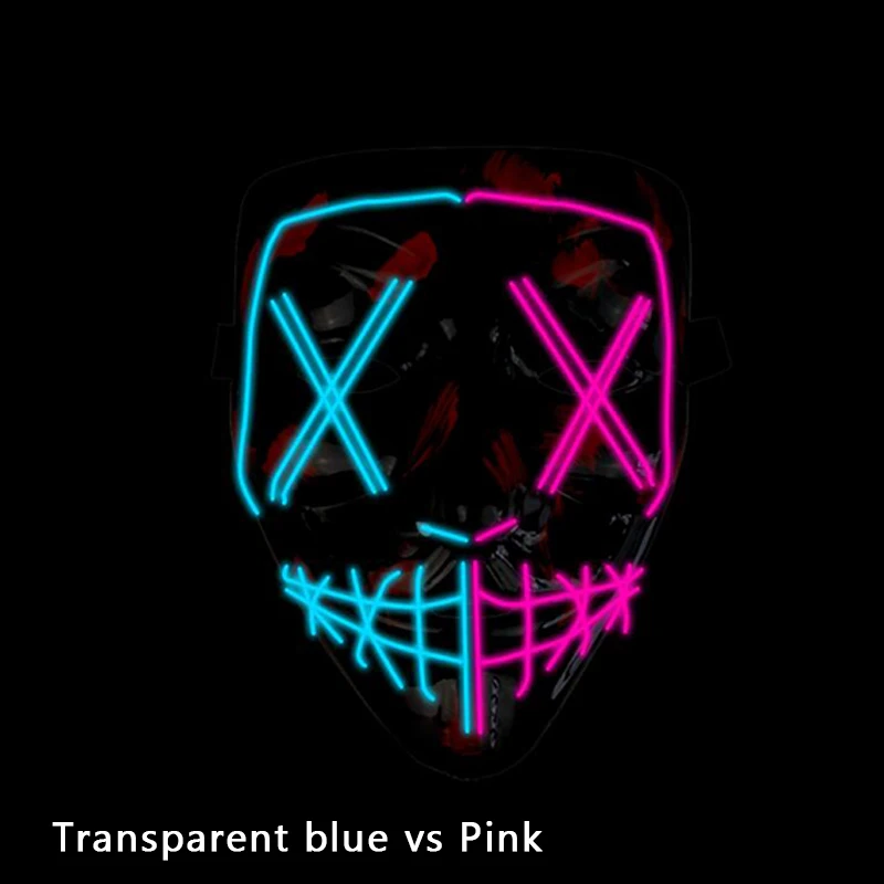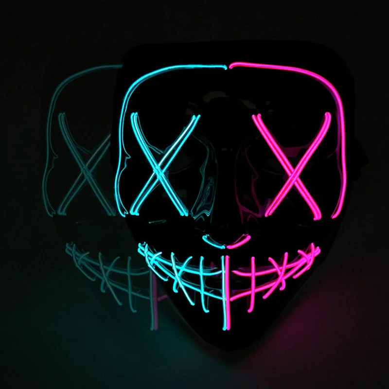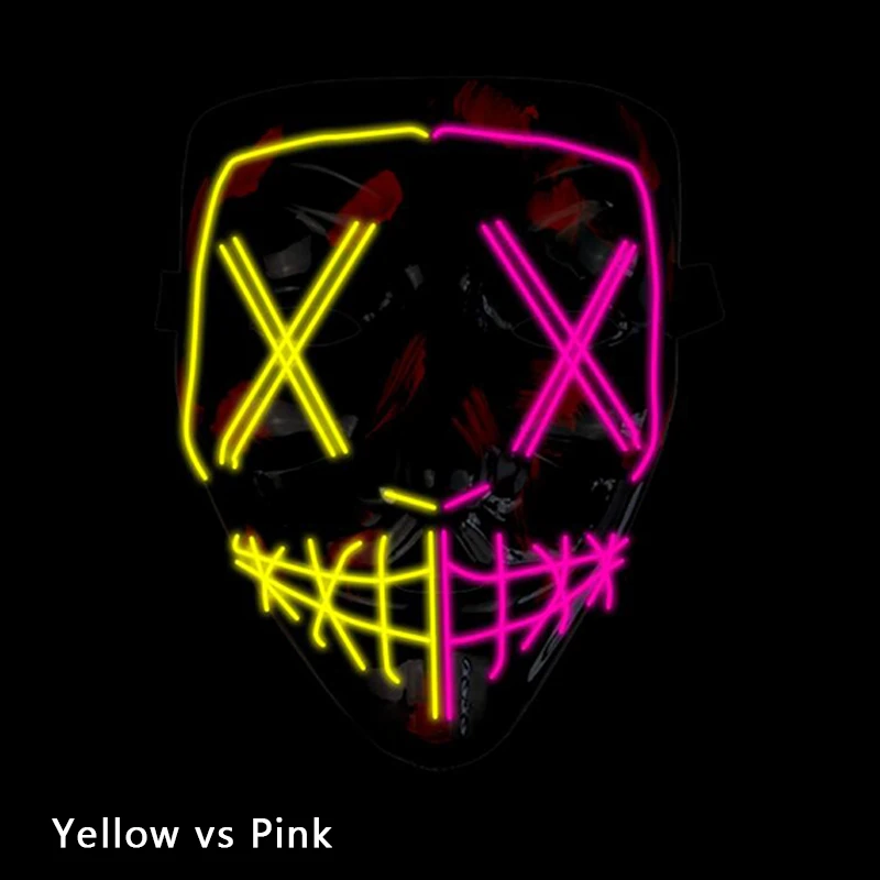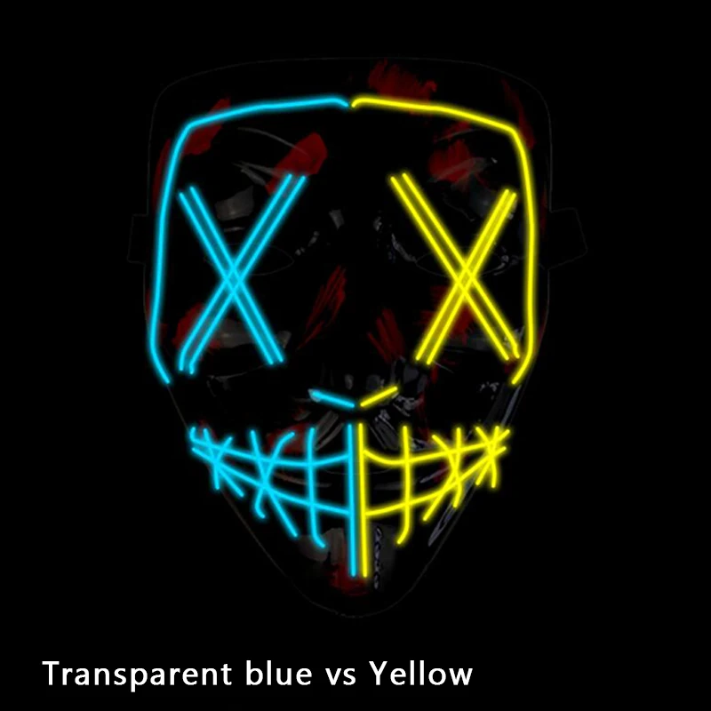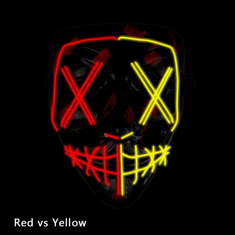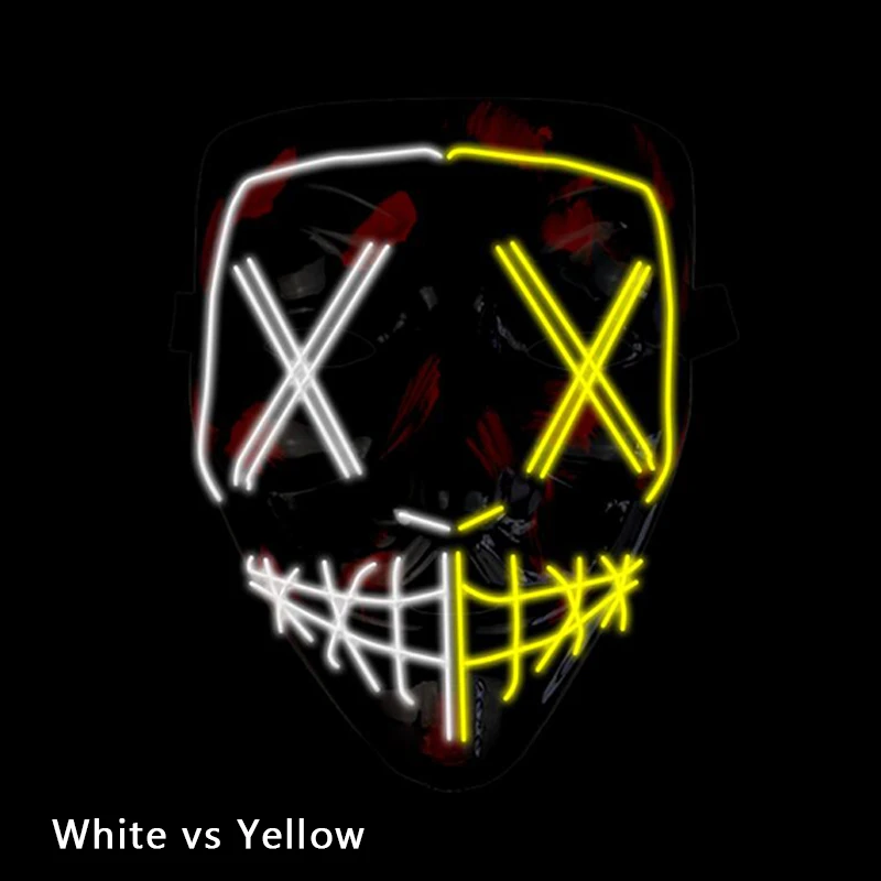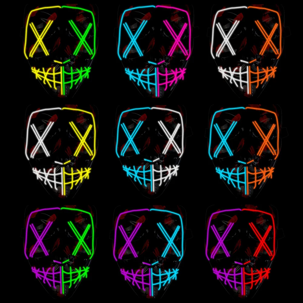 Светильник ящаяся светодиодная маска, маска для Хэллоуина, маскарадные маски, неоновая маска, светится в темноте тушь, ужасная маска, светящаяся маска