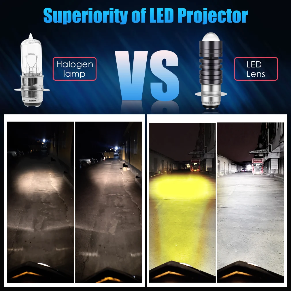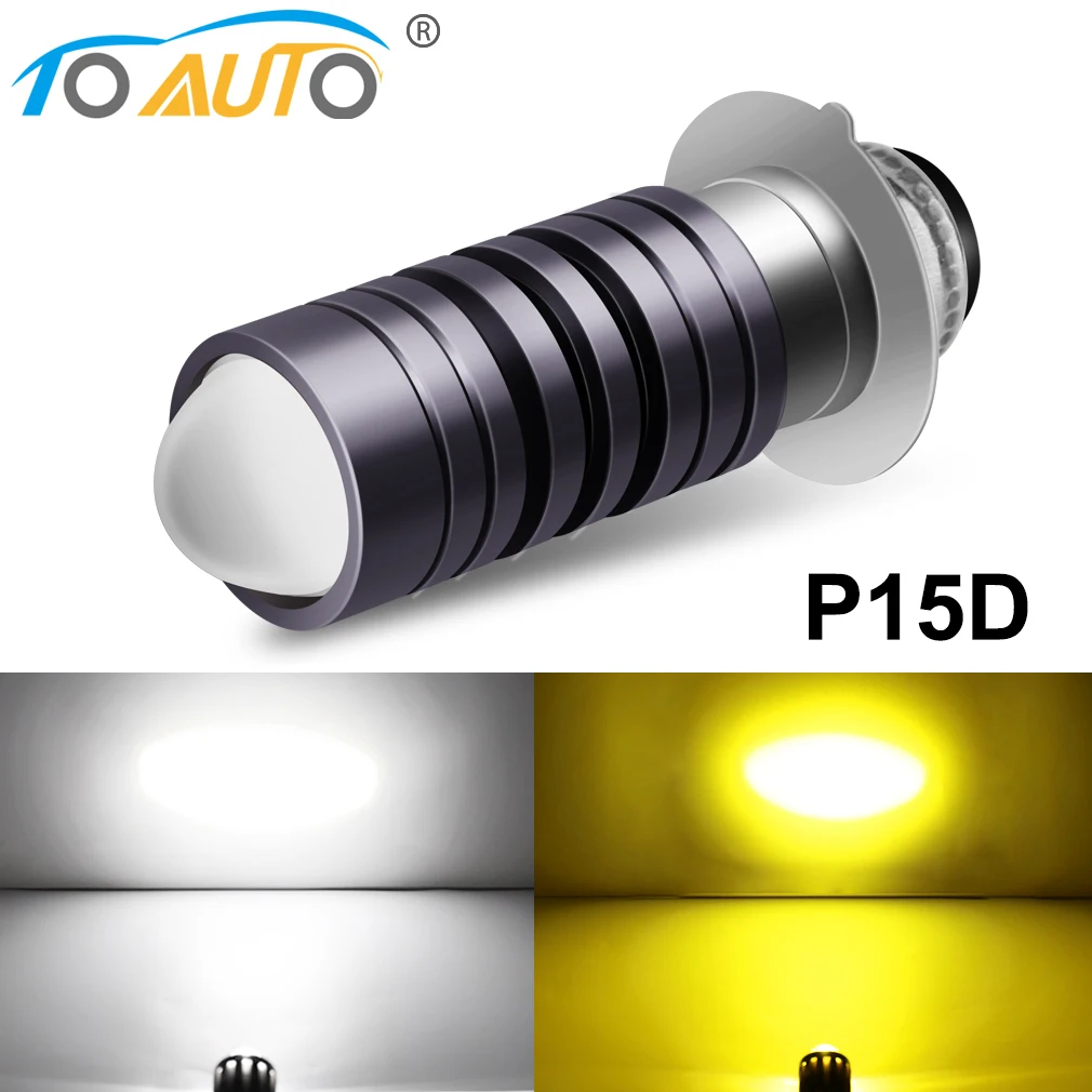 Светодиодные лампы для мотоцикла, 10 000 лм, P15D, Moto H6M, CSP, линзы белого и желтого цветов, противотумансветильник фары, 12 В постоянного тока