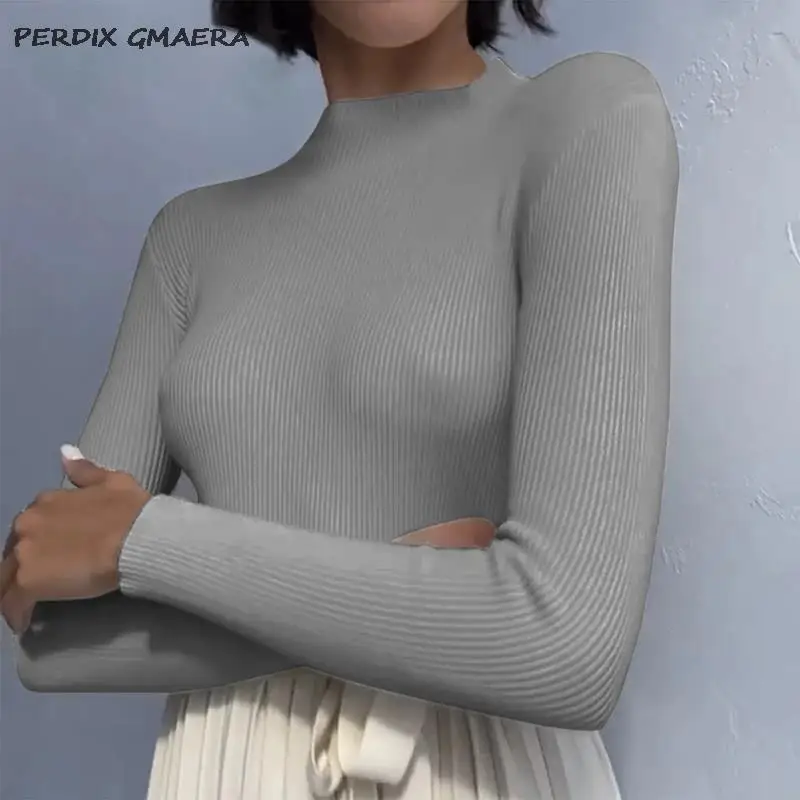 Осенне-зимние новые женские базовые однотонные вязаные теплые свитера с высоким воротником женские элегантные пуловеры праздничные минималистичные Топы