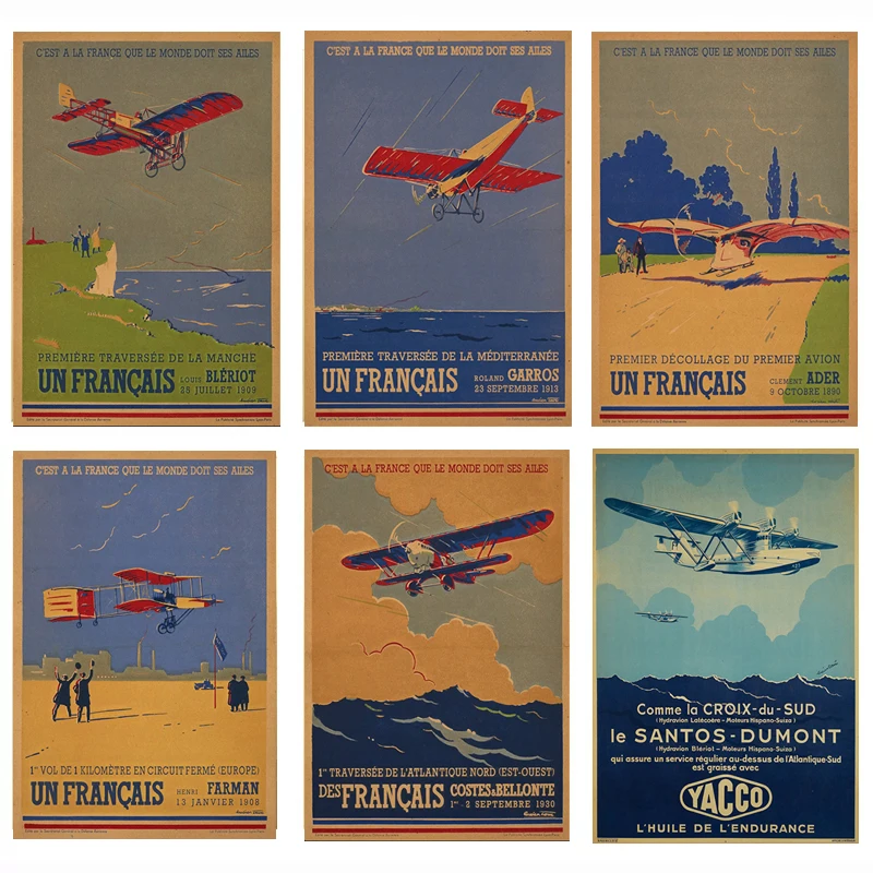 Ретро Художественная живопись воздушный и французский самолет Холст Живопись Печать плакаты и принты современный домашний фон украшение стены