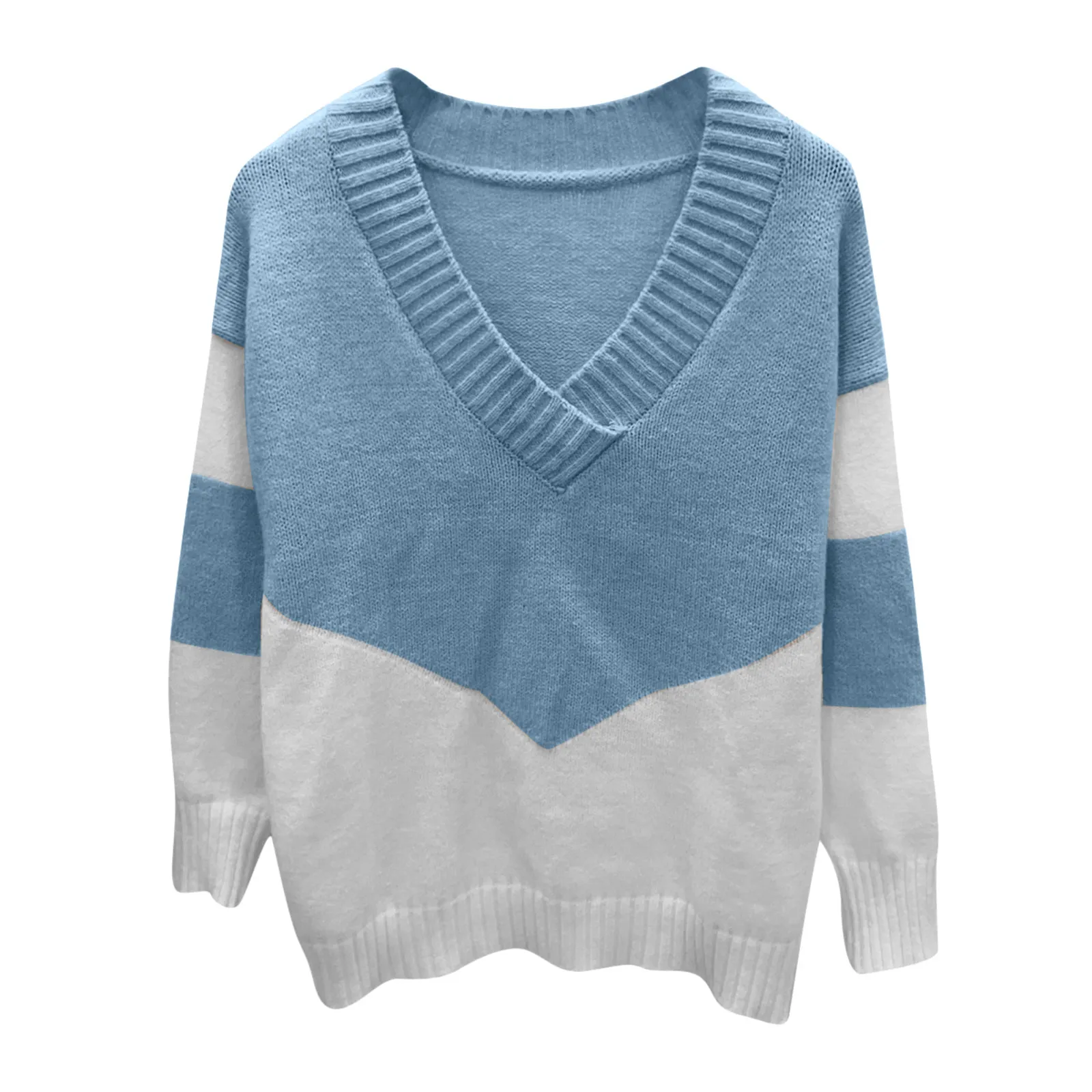 Женский свободный Трикотажный жилет, Двухцветный пуловер разных цветов с V-образным вырезом и длинным рукавом, шикарный Топ # t3g, 2021