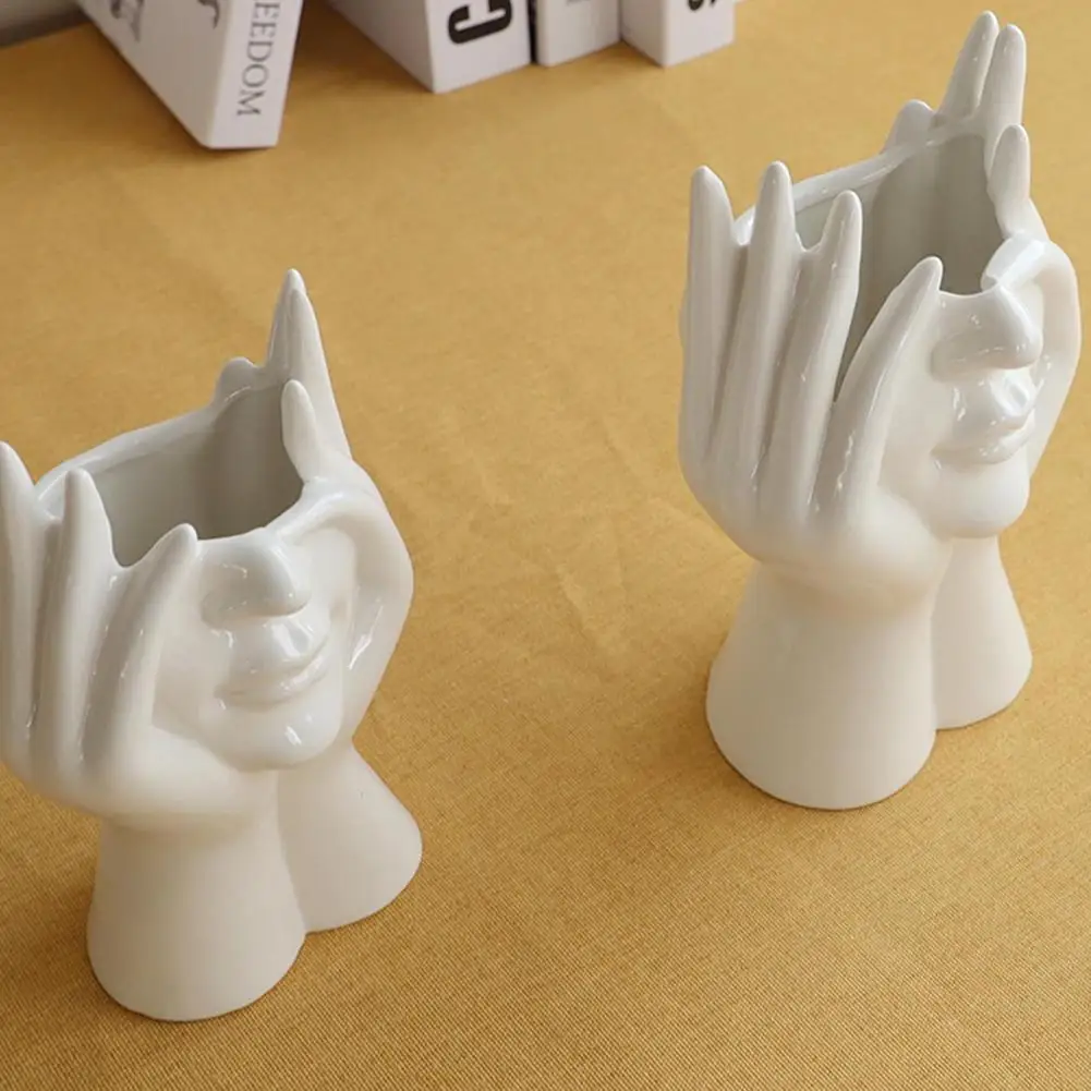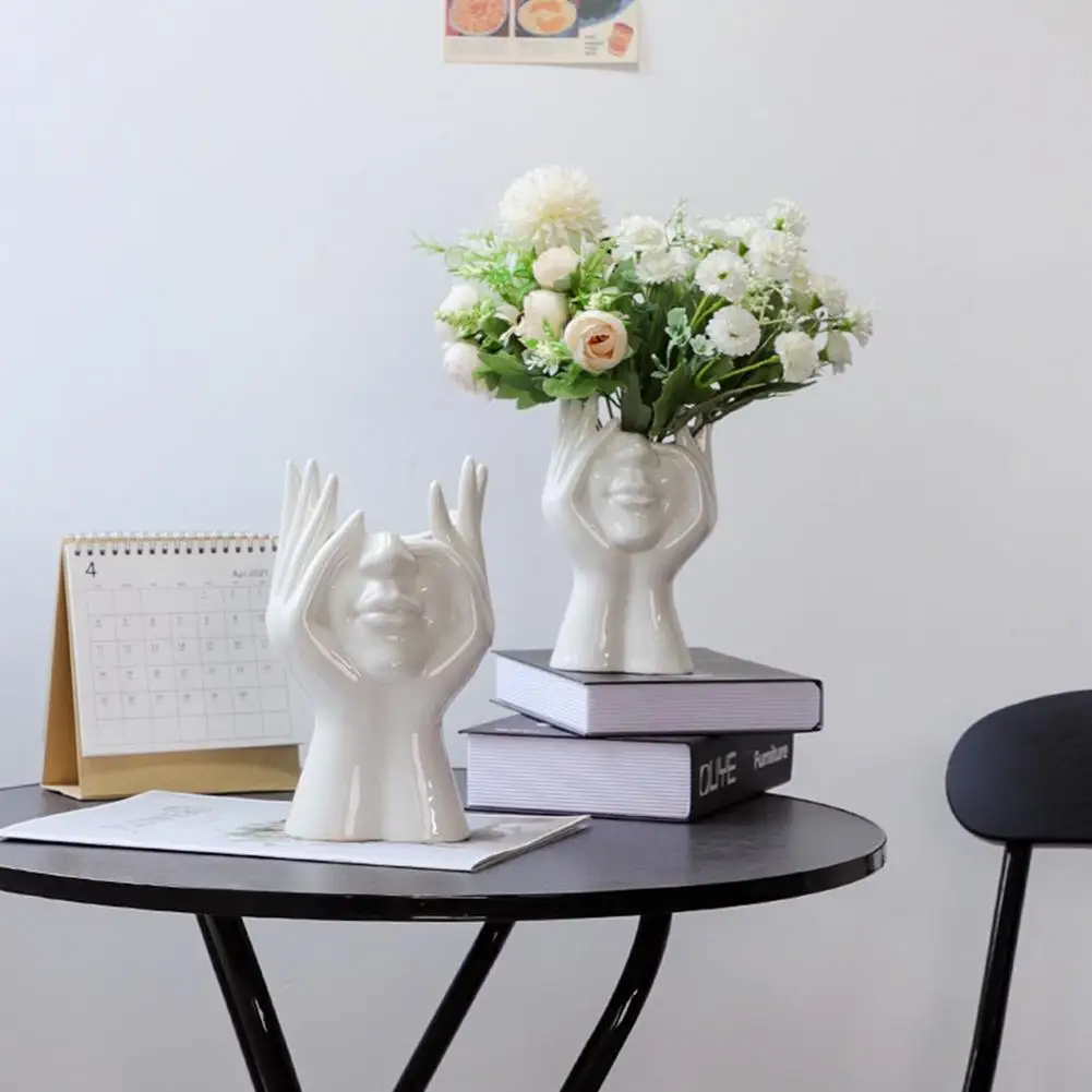 Ваза для цветов с человеческим лицом, декоративная прочная красивая современная скульптура для комнаты, бытовая ваза для сухих цветов с композицией