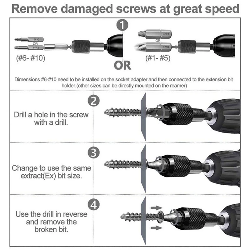 Набор для извлечения поврежденных винтов, комплект насадок для дрел...
