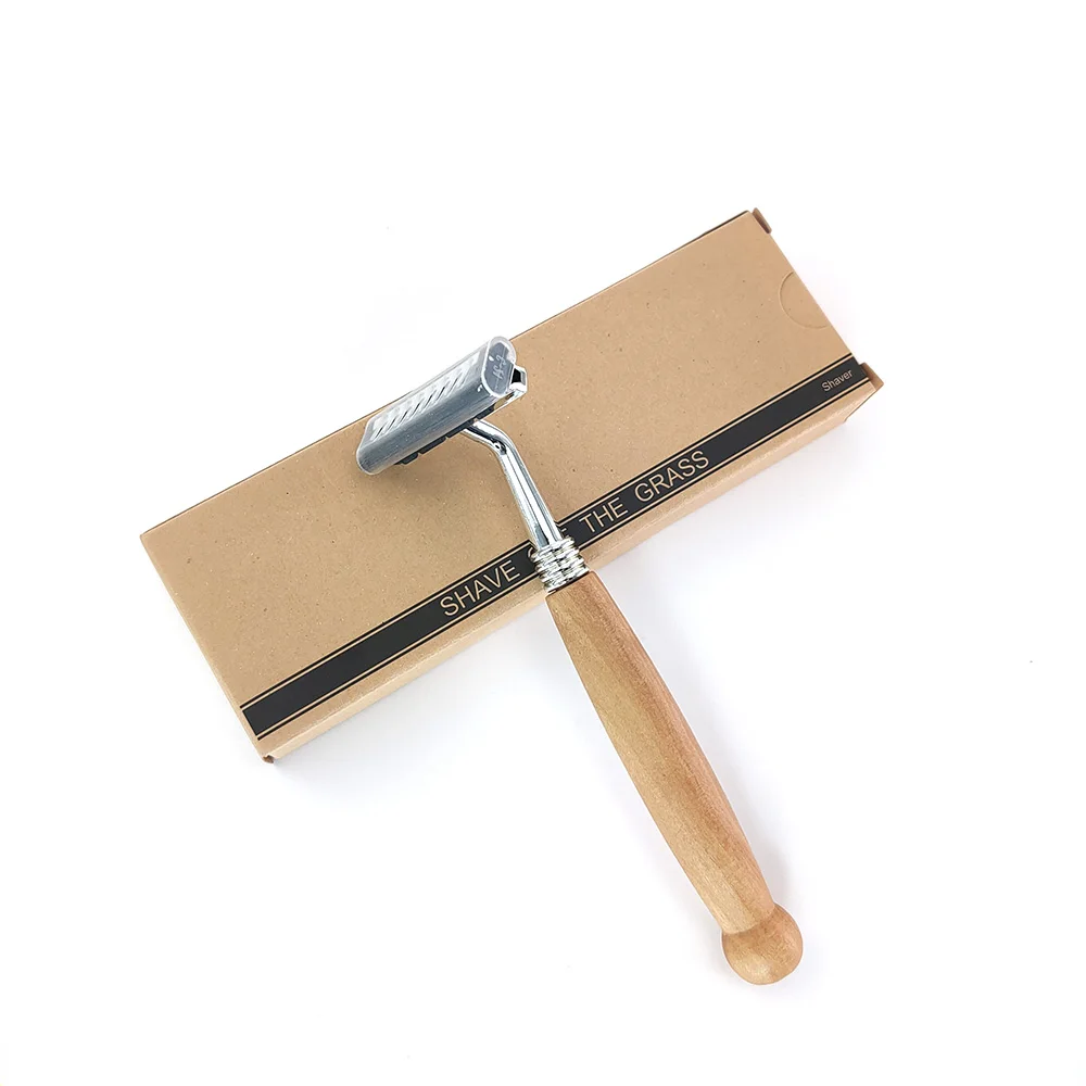 Бритва мужская многоразовая с двумя лезвиями, с деревянной ручкой