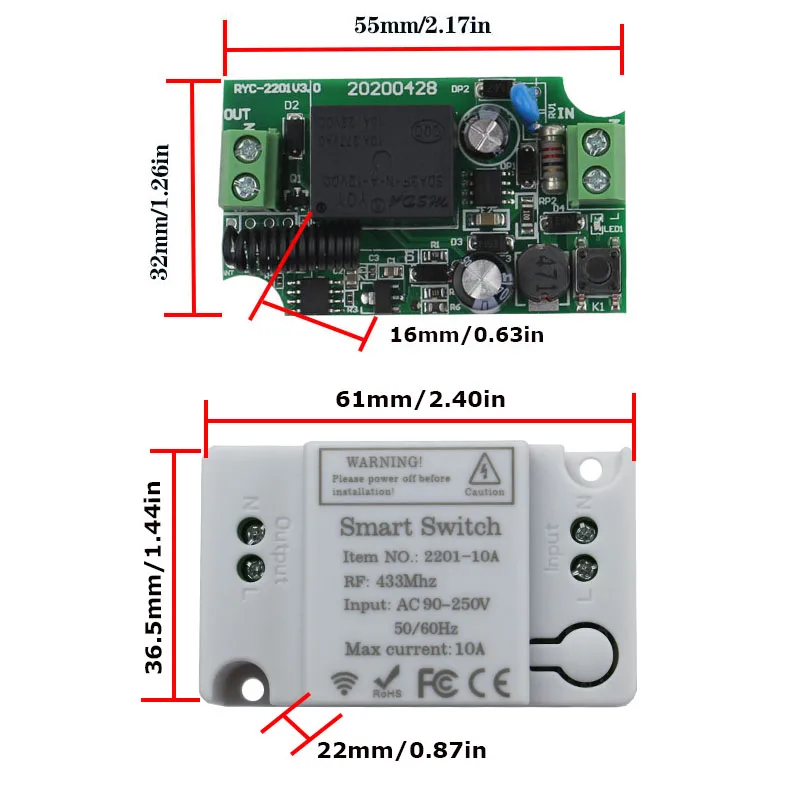 Номер модели1CH Relay Receiver control for Corridor Room/Led/Light Wireless Switch