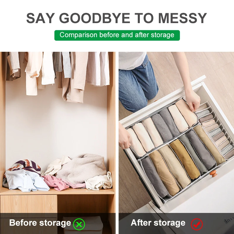 Основной материал: нейлоновая сетка + ткань Оксфорд25x36x20 см: для джинсов, брюк17x36x12 см: для леггинсов32*17*25 см: для футболки32*12*12 см: для трусиков32*32*12 см: для нижнего белья