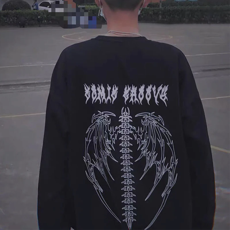 Толстовка в готическом стиле Y2k со скелетом для мужчин и женщин, винтажный черный топ в стиле гранж 90-х с длинным рукавом, Свитшот в стиле Харадзюку для пар в стиле хип-хоп, большие размеры