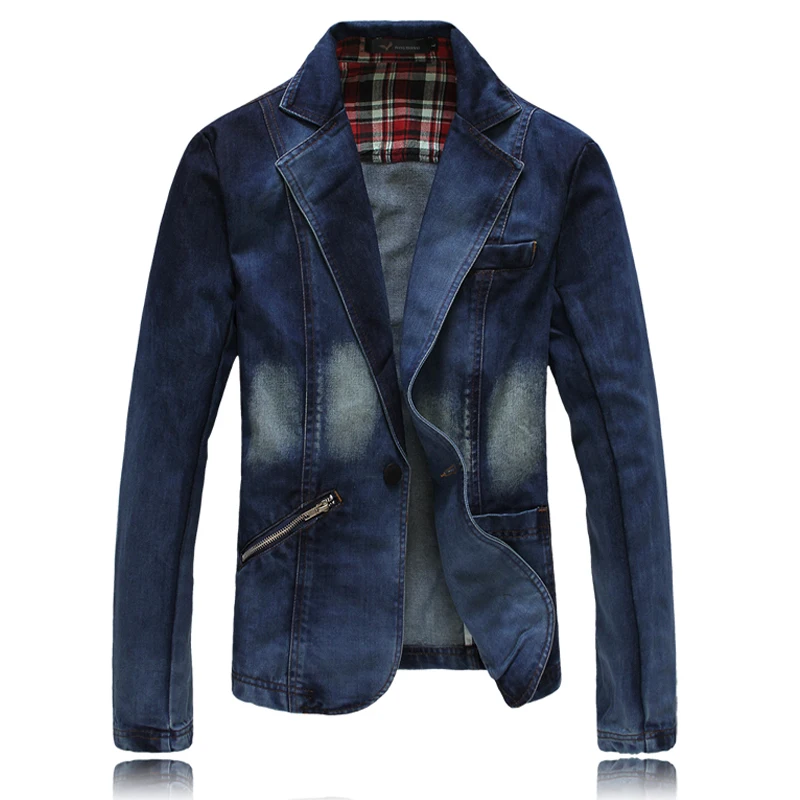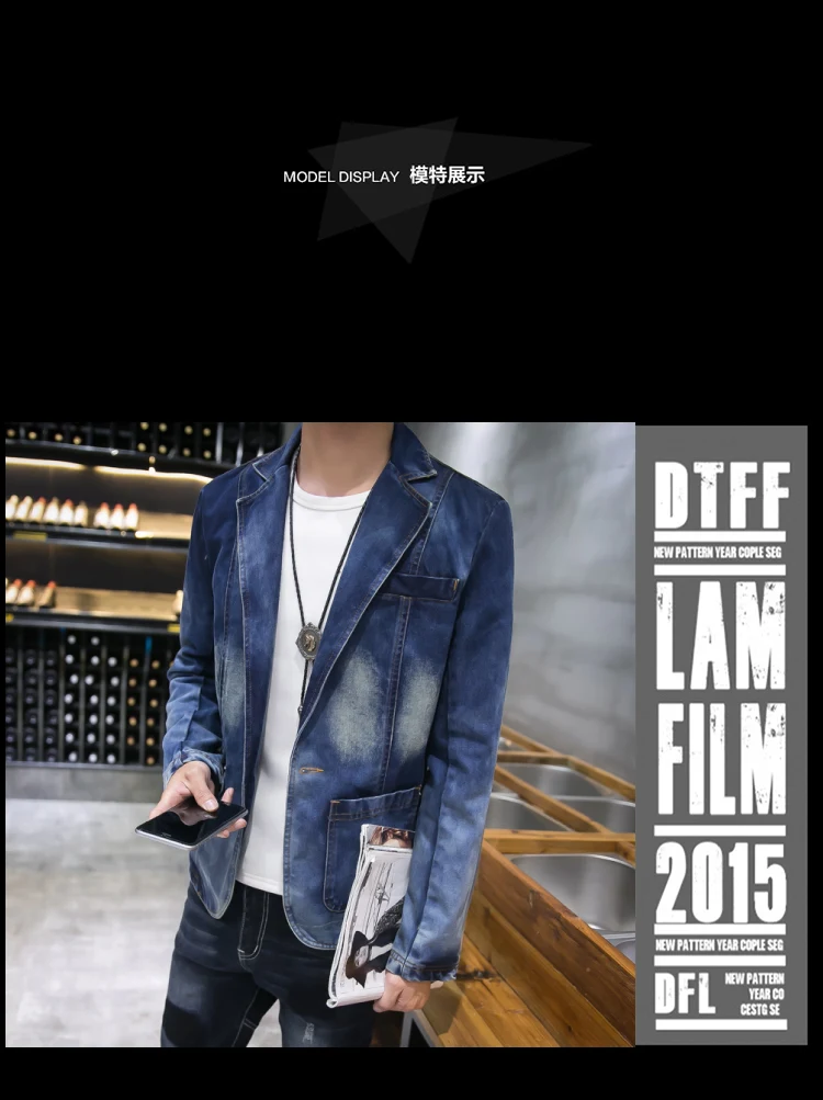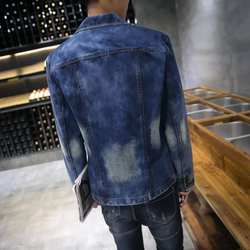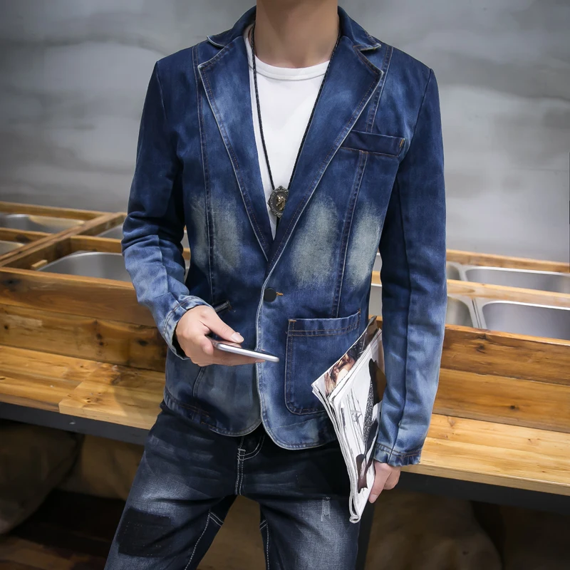 Модный мужской Джинсовый блейзер Boutique, Осенний Блейзер градиентного цвета в британском стиле, мужской облегающий Повседневный джинсовый костюм, куртка, Мужской Блейзер, пальто