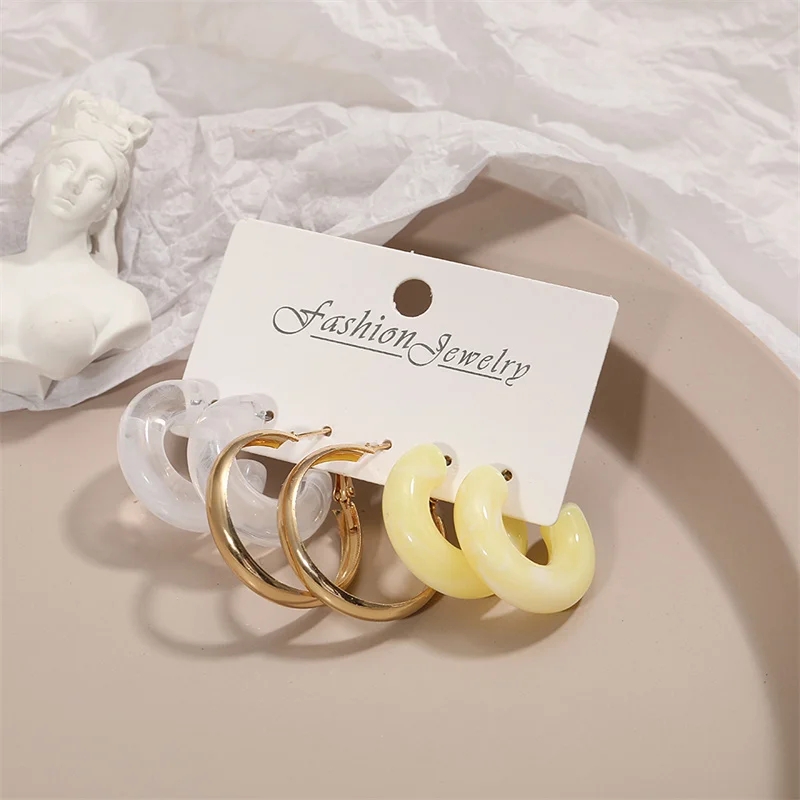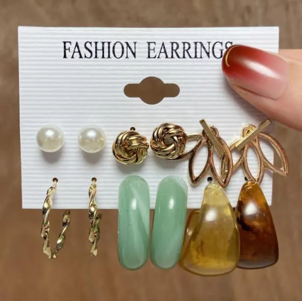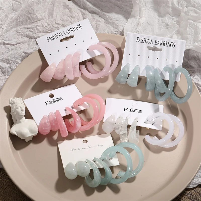 Разноцветные серьги из смолы в комплекте, жемчужное кольцо, конфетных цветов, металлическое Смешанное сочетание 2021, новый стиль для женщин