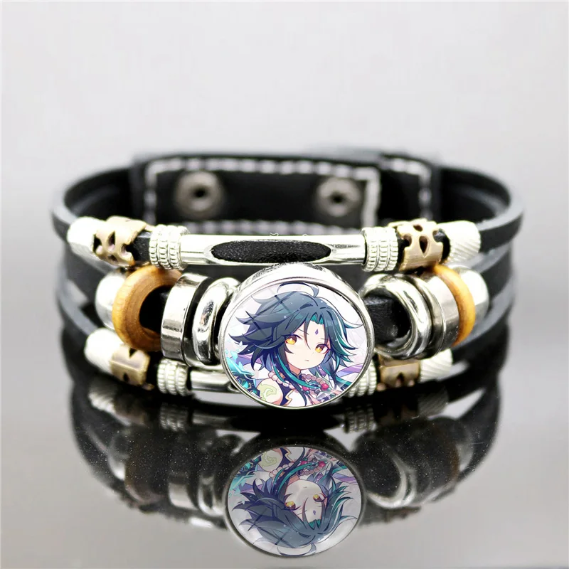 Аниме Браслет Game Genshin Impact Venti Hutao Zhongli бальковый мужской браслет на кнопках ручной работы модные кожаные браслеты в стиле панк
