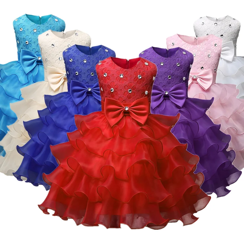 Повседневное летнее платье с бантом для девочек на свадьбу, со стразами, плиссированное платье на крестины для девочек 7 лет, праздничное платье для девочек