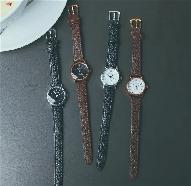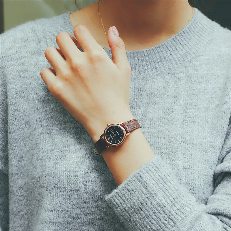Часы наручные женские с маленьким циферблатом, модные стильные винтажные, с кожаным ремешком, 4 цвета, чёрные коричневые
