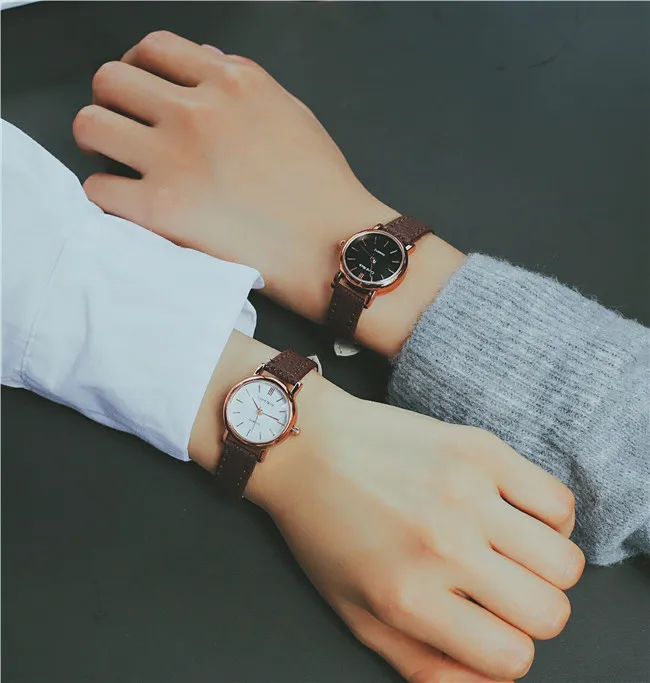 Часы наручные женские с кожаным ремешком, 4 цвета, черныйкоричневый