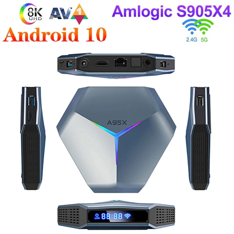 Приставка Смарт-ТВ A95X F4, Amlogic S905X4, Android 10, 8K, RGB светильник ка, 4 + 32 ГБ