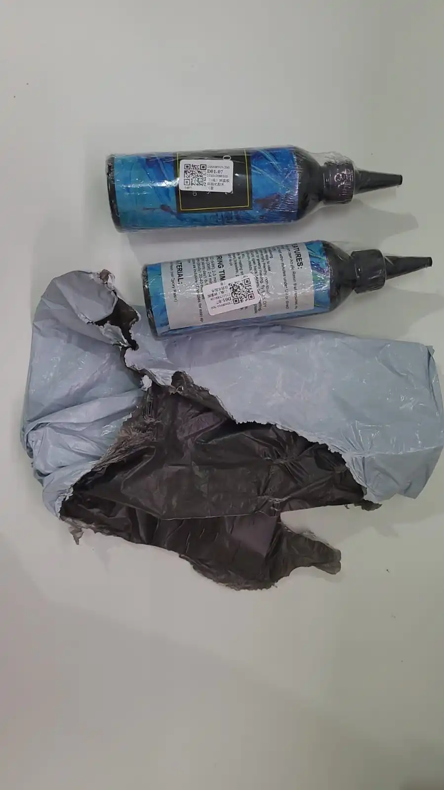 Я купил umbrela, но получил 2 бутылки УФ-смолы. Продавец отклонил возврат средств. Продавец говорит, что зонтик весит 462 г, ближе к моему весу упаковки (482 г). На рисунке показано, что товар, который я получил, соответствует весу на упаковке (481 Г x 482 г). Aliexpress отклонил возврат средств. Не покупайте! Афера!