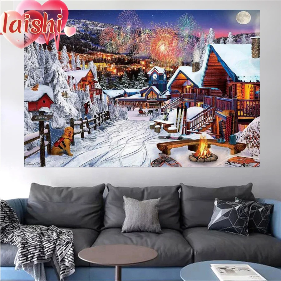 Полноформатная алмазная живопись, снежный фейерверк, мозаика 5D для вышивки крестиком, сделай сам, квадратная вышивкакруглая Алмазная вышивка, картина в подарок