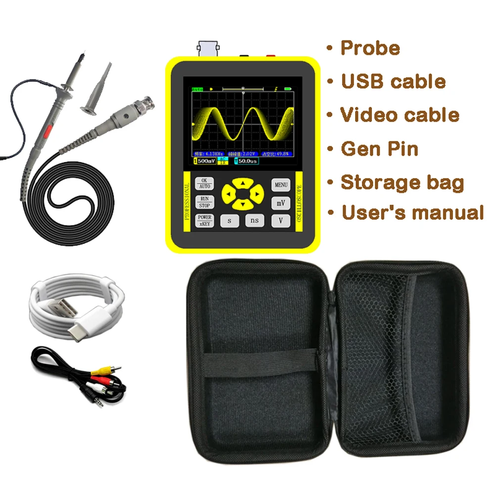 Это своего рода качественный осциллограф с полосой пропускания 120 м и частотой дискретизации 500 м, более стабильный и с более высокой точностью. Доступны 14 вариантов измерения, частота, от пиков до пиков, рабочий цикл, амплитуда, среднеквадратичное значение, среднее значение, период, + ширина импульса,-ширина импульса, Max, Min,Top, Base, -Рабочий цикл. Поддержка переключения формы выходного сигнала: Синусоидальная волна, квадратная волна, треугольная волна и т. д. Широко применяется для отладки микроконтроллеров, ремонта автомобилей, ремонта бытовой техники, электронного соревнования «сделай сам», отладки источника питания, инвертора и т. д. Вы можете попробовать.Особенности:Разрешение:Оснащен цветным дисплеем с разрешением 320*240, яркими цветами и высокой контрастностью, вы можете четко видеть данные.Полоса пропускания и Частота дискретизации:С полосой пропускания 120 м и частотой дискретизации 500 м, более стабильной и с более высокой точностью.Высокая пропускная способность:Полоса пропускания до 120 м легко справляется с тестами измерений в различных областях.Доступно 14 вариантов измерения:Частота, от пиков до пиков, рабочий цикл, амплитуда, среднеквадратичное значение, среднее значение, период, + ширина импульса,-ширина импульса, Макс, мин, верх, база,-рабочий цикл.Поддержка переключения формы выходного сигнала: Синусоидальная волна, квадратная волна, треугольная волна и т. д.БПФ:БПФ используется для преобразования волновых форм времени в Частотный домен и широко используется в гармоническом анализе и других областях.Поддержка трех режимов отображения:Логарифмический, линейный и музыкальный спектр.Опорная Форма волны:Вы можете сначала измерить форму волн, заблокировать текущую форму волн на экране, и это не повлияет на нормально обновленную форму волн. Опорные волны пригодятся для одноканальных осциллографов. С помощью опорных волновых форм вы можете легко сравнить формы волн двух каналов.Полный триггер:Режим Триг: автоматический/нормальный; Типы триггеров: подъем/падение, уровень триггера: ручной/автоматическийВертикальная чувствительность и Временная база:Вертикальная чувствительность прицела составляет от 10 мВ/дел до 10 В/дел (диапазон 1X). Временная база осциллографа составляет от 5 нс до 10 с.Сохранение волн:Одним кликом для сохранения формы волн на экране, а также поддержки удаления или просмотра исторических снимков экрана.Подключение к ПК:Снимки экрана можно экспортировать на компьютеры через USB-соединение.Видеовыход:Гнездо для наушников 3,5 мм внизу может выводить AV-видео, имитирующий сигнал, который можно подключить к телевизору или проектору.Источник питания:Встроенная перезаряжаемая литиевая батарея, большая емкость 3,7 в, 3000 мАч, полная зарядка обеспечивает длительное время работы.Компактный размер:Легкий и портативный, также может использоваться в качестве портативного инструмента для отладки на месте.Широкое применение:Подходит для отладки mcu, ремонта автомобилей, ремонта бытовой техники, электронного соревнования «сделай сам», отладки источника питания, инвертора и т. д.Характеристики:Название: осциллографМодель: DSO1511GЦвет: желтый, зеленый(Необязательно)Аккумулятор: 1*2,5 в, аккумулятор 3000 мАч(Включено)Каналы: 1Размер экрана: 2,4 дюймаИзмерение: 14 типовРазрешение: 320*240Полоса пропускания: 120 мЧастота дискрети