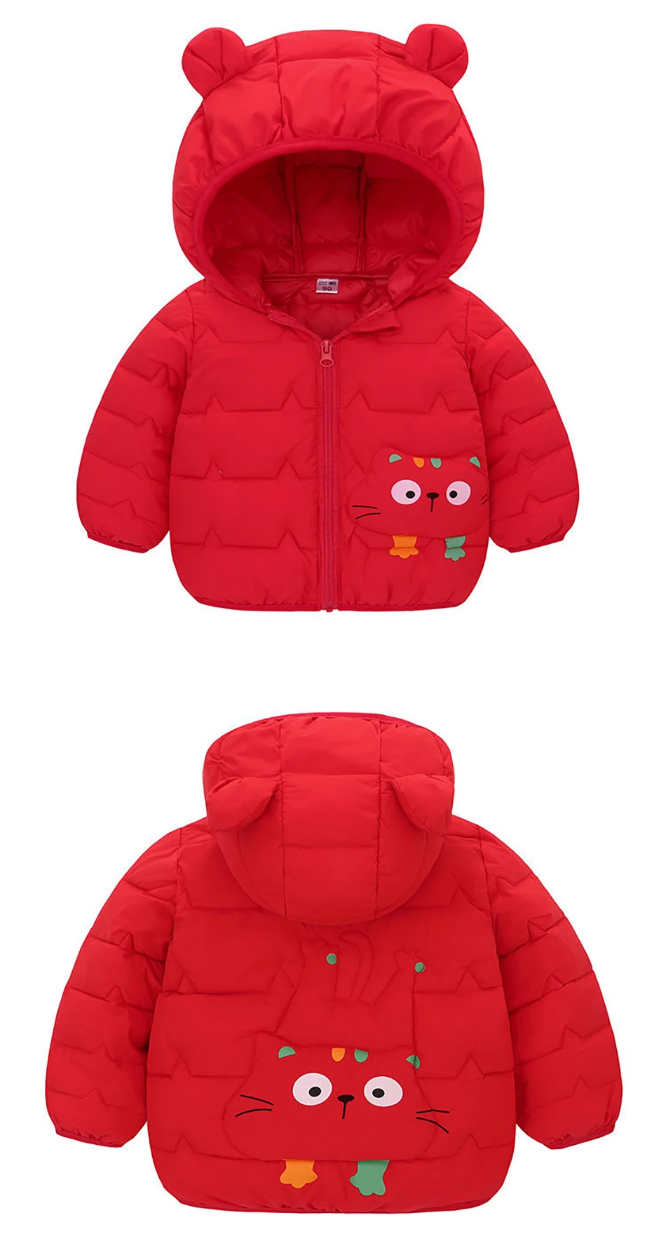 Зимняя одежда, Толстая теплая куртка, Мультяшные хлопковые пуховики с капюшоном с ушками, одежда, повседневная парка для девочек и мальчиков, верхняя одежда для 2-6 лет