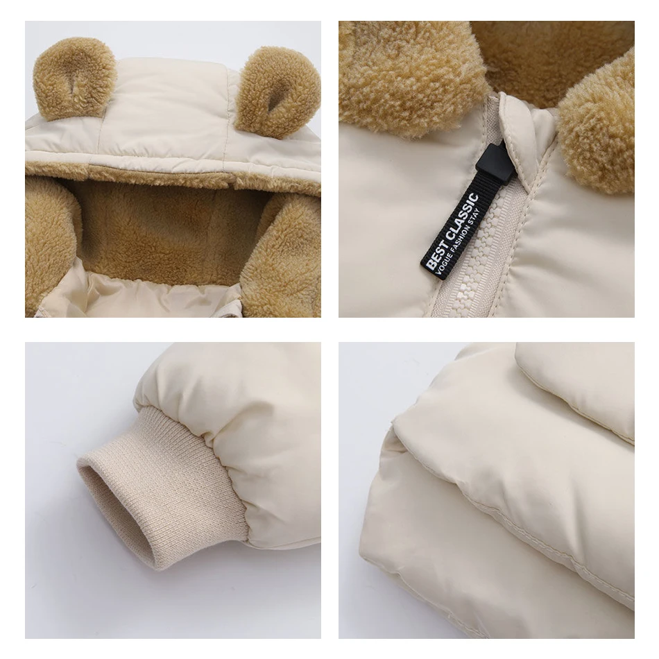 Зимняя одежда плотная теплая куртка хлопковые пуховые пальто с капюшоном и ушками Повседневная парка для мальчиков и девочек, верхняя одежда для детей от 2 до 6 лет