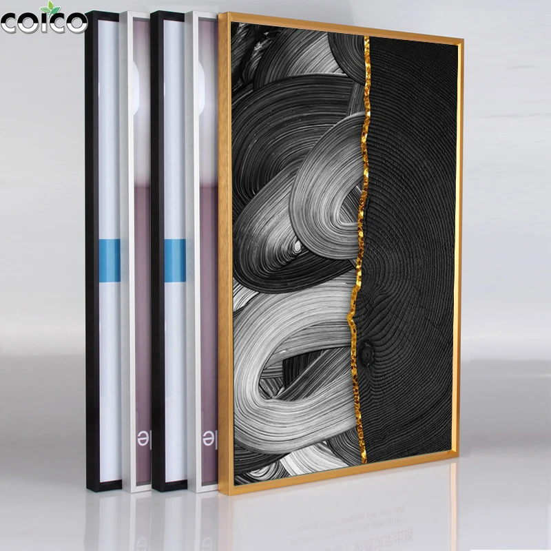 Металлическая фоторамка с абстрактным мраморным черным золотым кольцом дерева, роскошная Картина на холсте, Современная печать, домашний декор, настенный постер