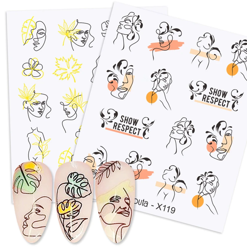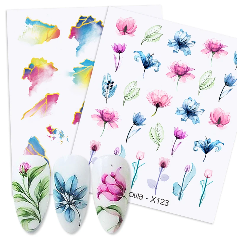Harunouta леопардовая абстрактная линия Водные Наклейки для ногтей наклейки на День святого Валентина цветы слайдеры украшение для осени Дизайн ногтей