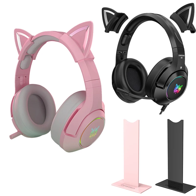 Универсальные Игровые наушники K9 с кошачьими ушками, с милой светодиодной подсветкой, гарнитура с микрофоном для ПК, ноутбука, PS4, Xbox One