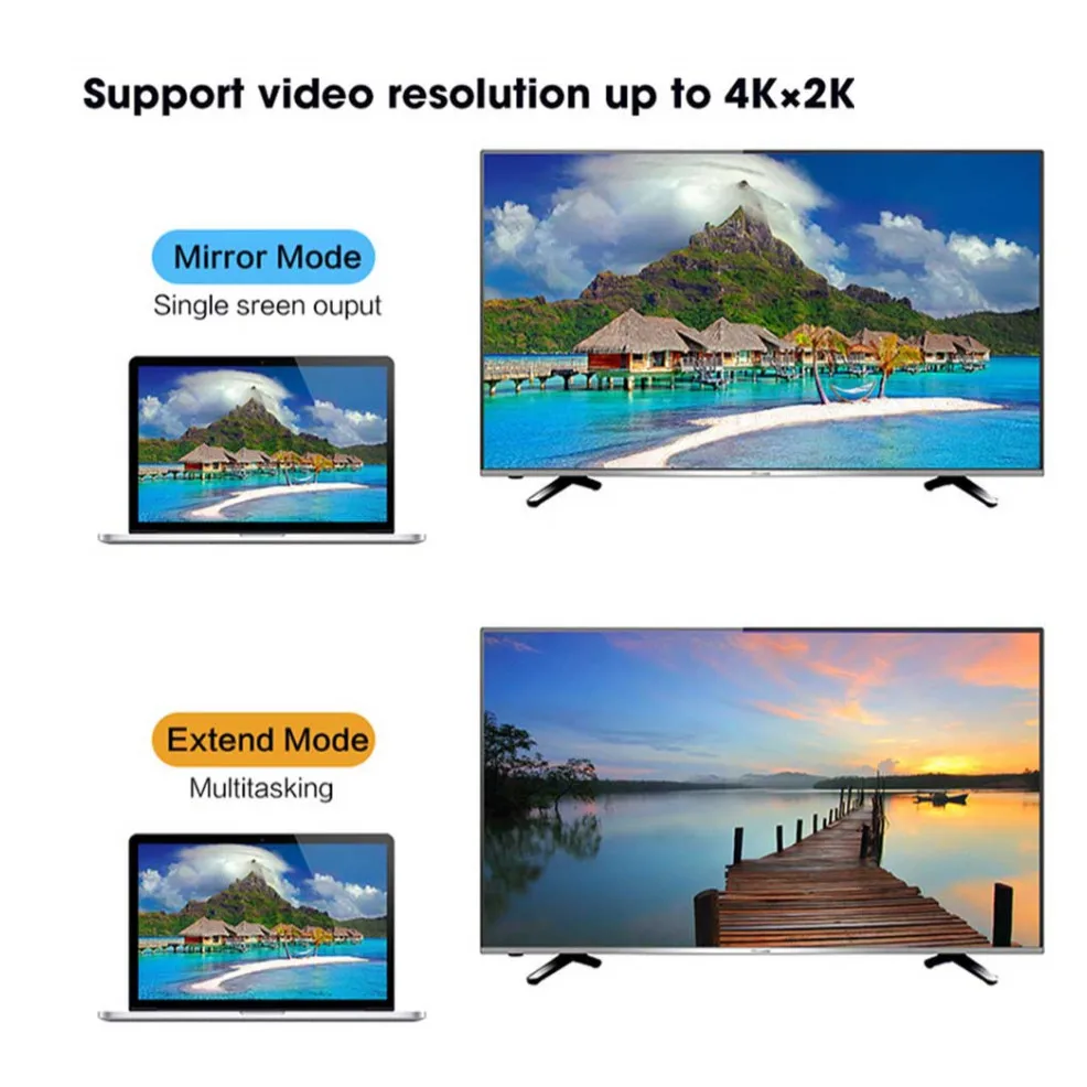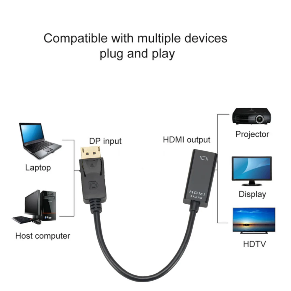 Адаптер/кабель 4K 1080P Displayport-HDMI:Портативный адаптер подключает ноутбук или настольный компьютер DisplayPort (DP, DP ++, DisplayPort ++) к телевизору высокой четкости, монитору или проектору с входом HDMI; Требуется Кабель HDMI (продается отдельно).Передает аудио и видео высокой четкости с компьютера на HDTV для потоковой передачи видео или игр; Подключите и настройте монитор для расширенного рабочего стола или зеркальных дисплеев.Поддерживает разрешение 4K @ 30 Гц (3840x2160) Ultra HD и несжатие цифровых аудиоканалов 7,1, 5,1 или 2.Позолоченные разъемы устойчивы к коррозии, обеспечивают долговечность и улучшают передачу сигнала.Разъем DisplayPort с защелками обеспечивает безопасное соединение с помощью кнопки разблокировки, которая должна быть нажата перед отключением.Посылка1*4k/1080p Адаптер DP к HDMI конвертер