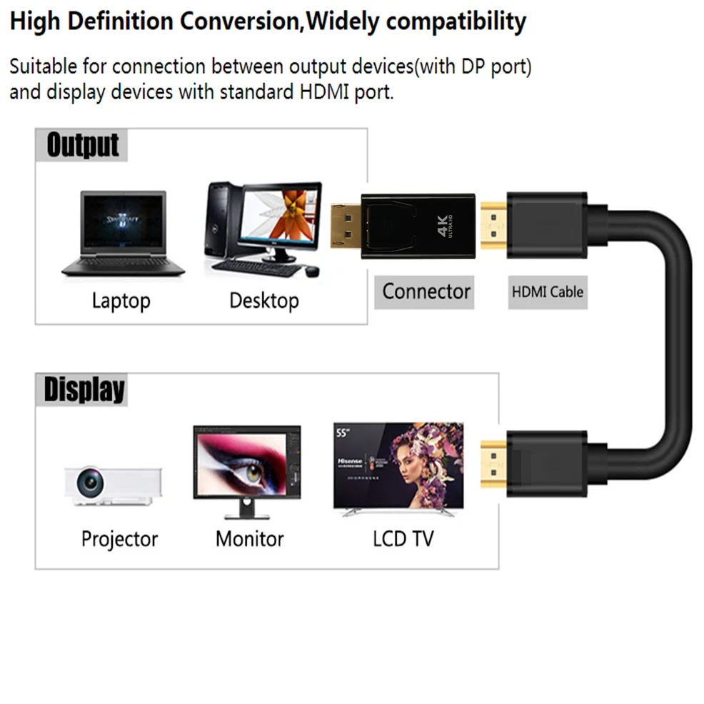 LccKaa 4K DPHDMI-совместимый 1080P DisplayPortHDMI-совместимый кабель для ПК, телевизора, проектора, телевизора, монитора
