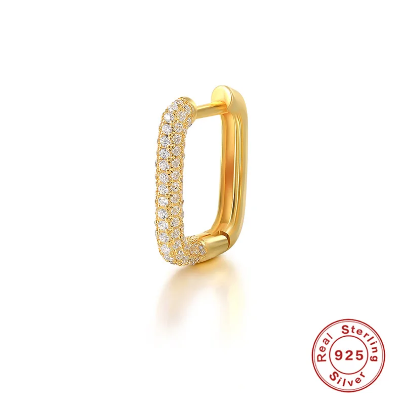 Тип украшения:Женские прямоугольные серьги-кольца F.I.N.S, 1 шт., цветные CZ Huggie пряжки для ушей, ювелирные изделия из стерлингового серебра 925 пробы
