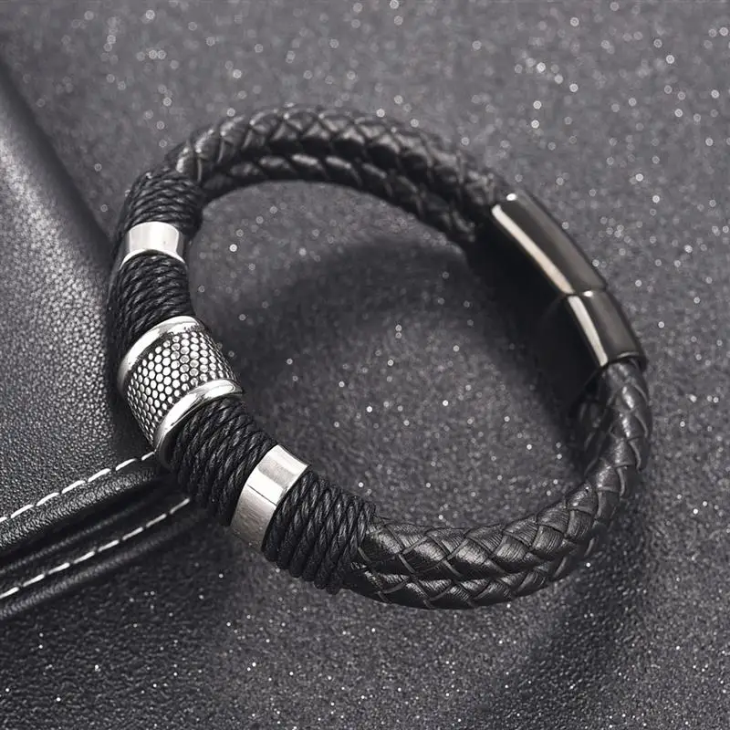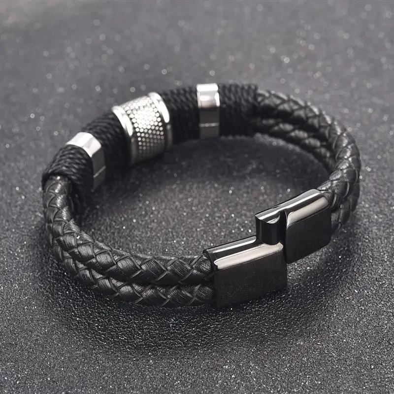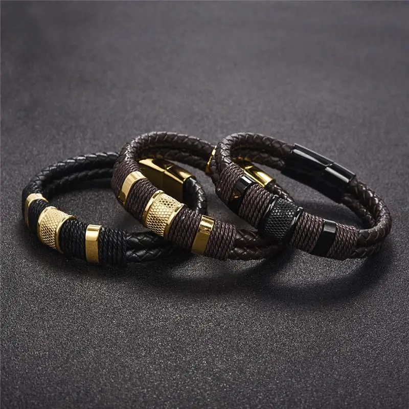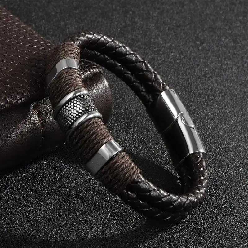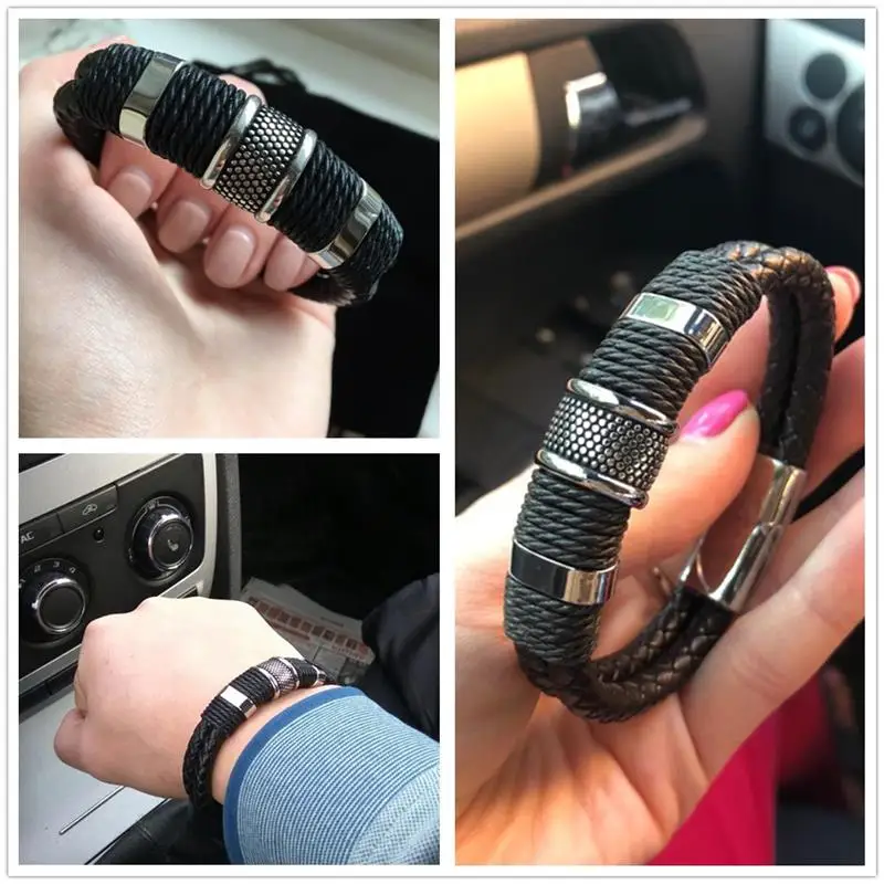 Модный плетеный кожаный браслет мужской браслет из нержавеющей стали с магнитной застежкой двойная слойная оболочка классический мужской браслет ювелирные изделия подарок