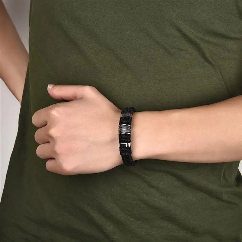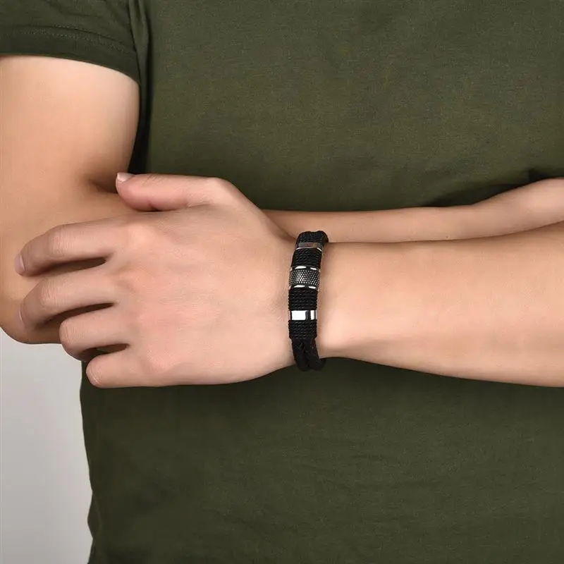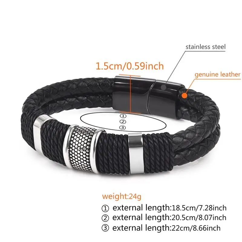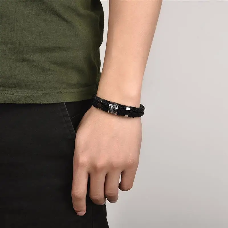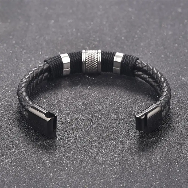 Модный плетеный кожаный браслет мужской браслет из нержавеющей стали с магнитной застежкой двойная слойная оболочка классический мужской браслет ювелирные изделия подарок