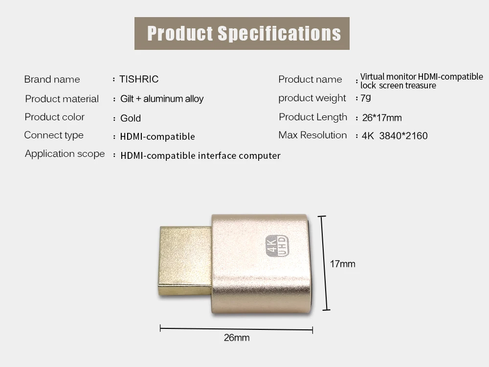 TISHRIC HDMI совместимый виртуальный дисплей 4K подключаемый штекер...
