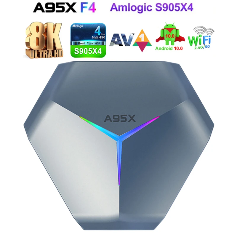 ТВ-приставка A95X F4, Android 10, Amlogic S905X4, 4K, YouTube, 4 + 32 ГБ, 2,45G ГГц, Wi-Fi, RGB-подсветка, поддерживает MP3