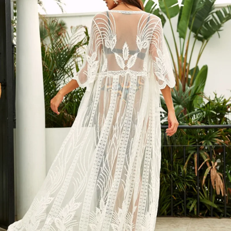 Женская пляжная одежда с вышивкой, длинное бикини с узором, Пляжная накидка для купания и отдыха
