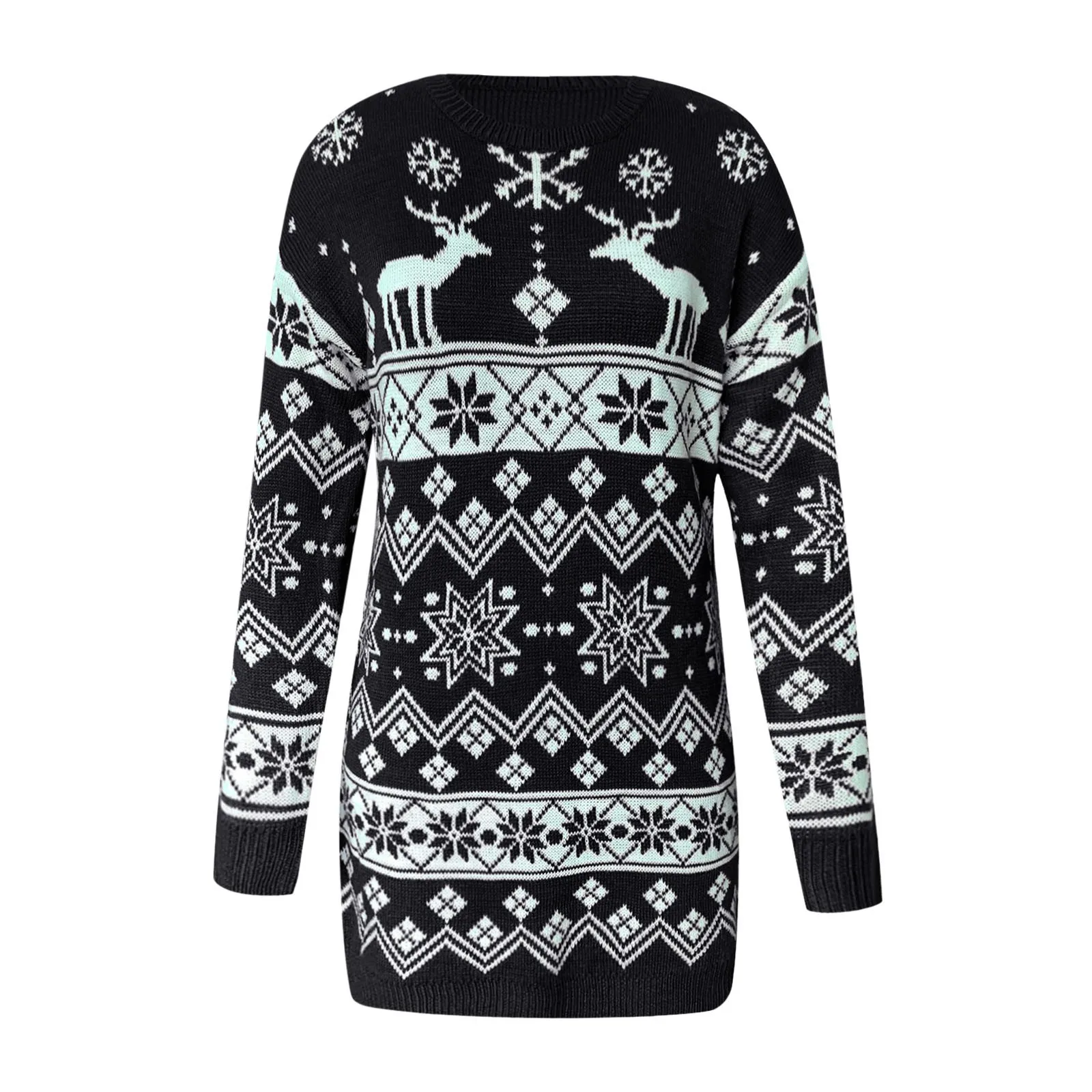 Женский Рождественский свитер с длинным рукавом, с круглым вырезом