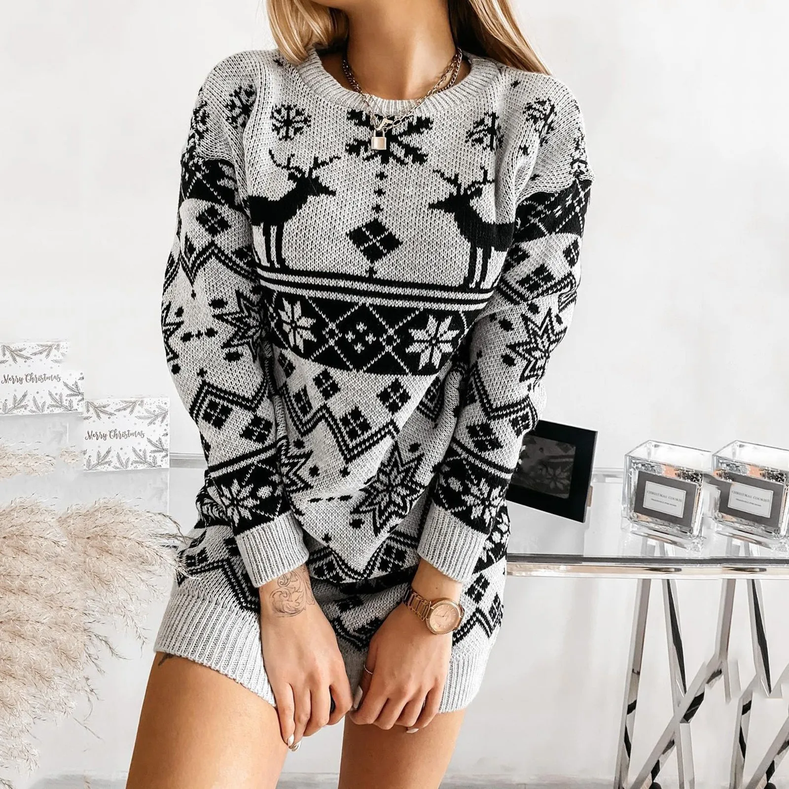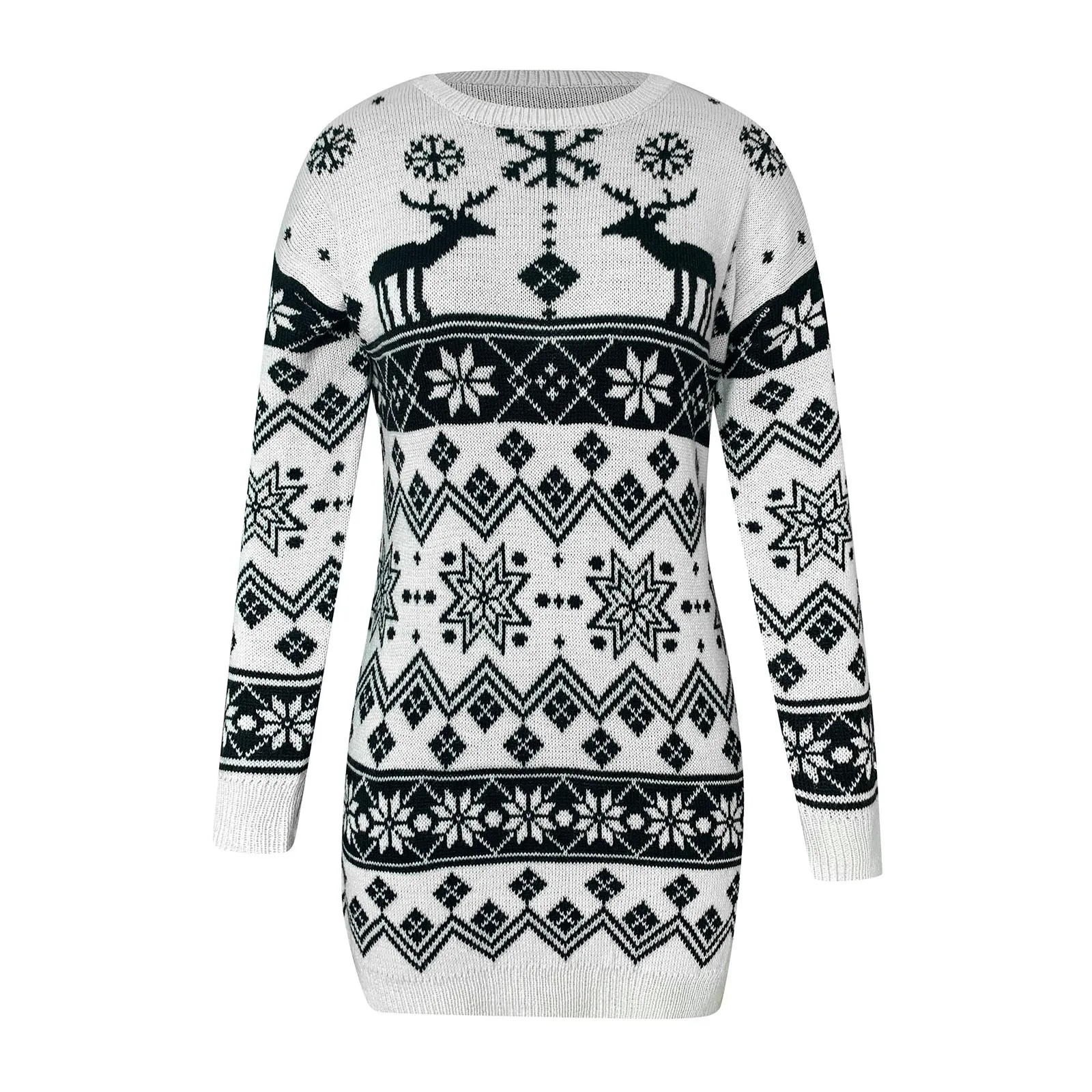 Женское рождественское платье-свитер, модные осенне-зимние платья с...