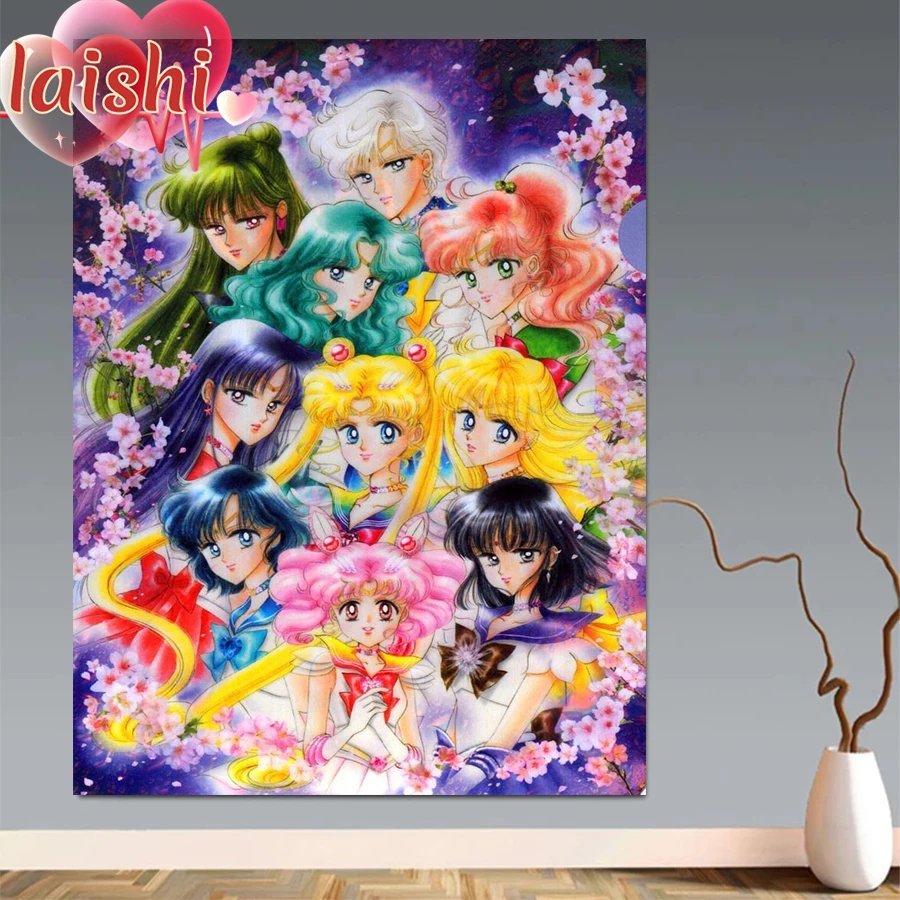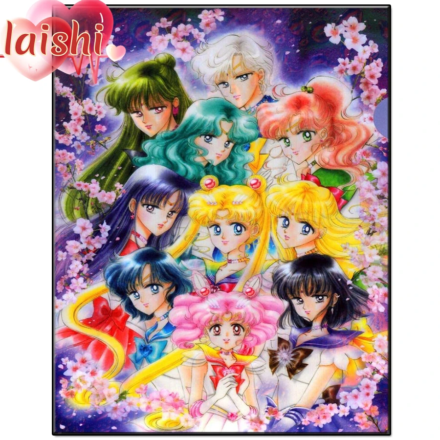 5D мультяшная алмазная живопись Сейлор Мун, полностью круглая Алмазная мозаика, круглая Алмазная вышивка, вышивка крестиком, алмазная живопись