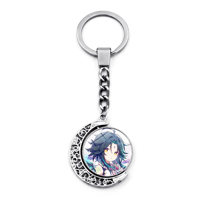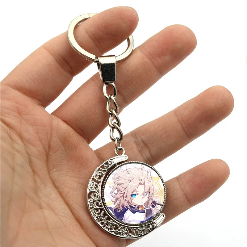 Брелок Genshin Impact, подвеска с двусторонней вращающейся подвеской в виде Луны, в стиле аниме, для рюкзаков, кольцо для ключей, держатель, подарок