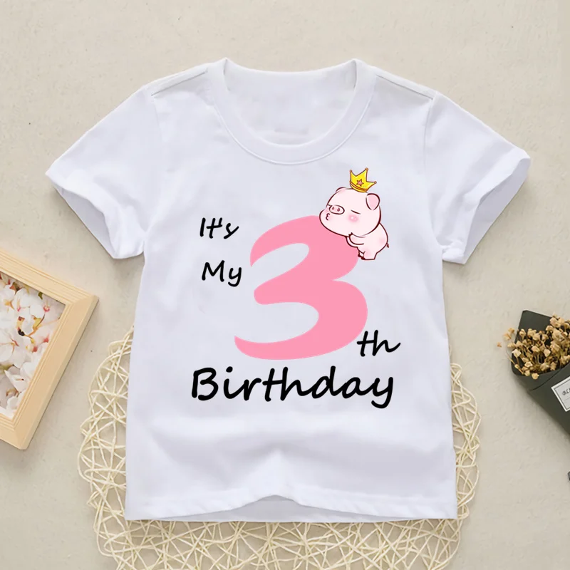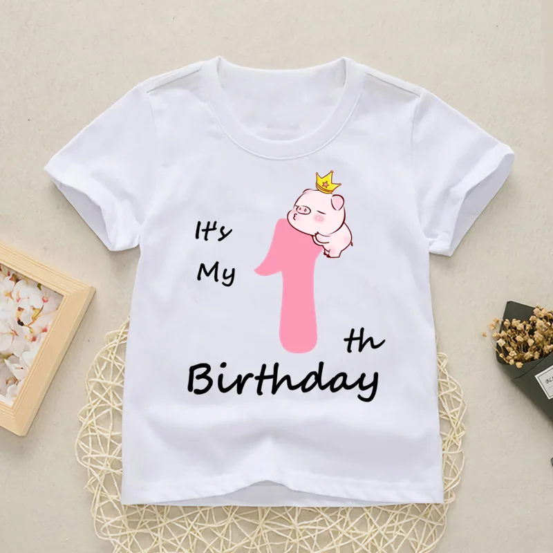 Детские футболки на день рождения, футболка на 1-10-й день рождения с изображением милой свиньи, летняя одежда для мальчиков и девочек, с мультяшным рисунком и коротким рукавом