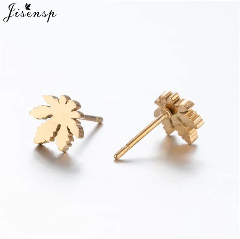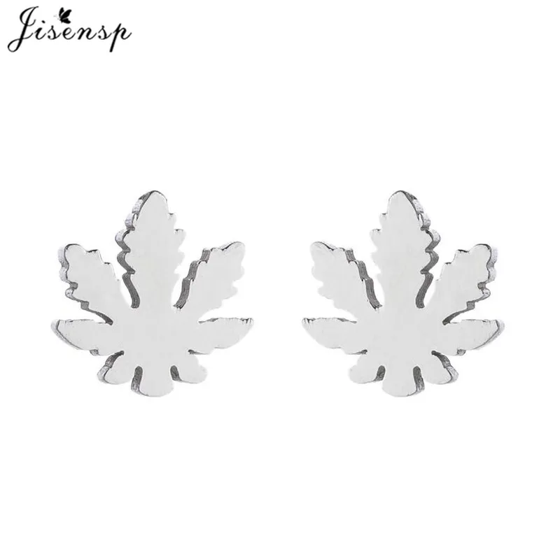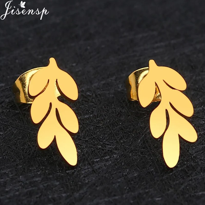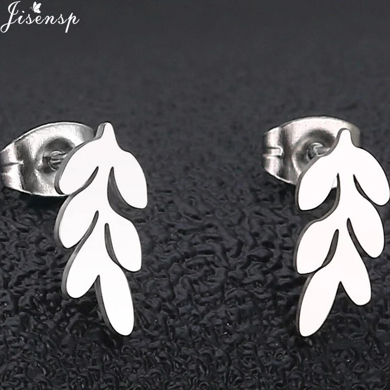 Серьги-гвоздики женские, мужские, из нержавеющей стали, в виде лист...