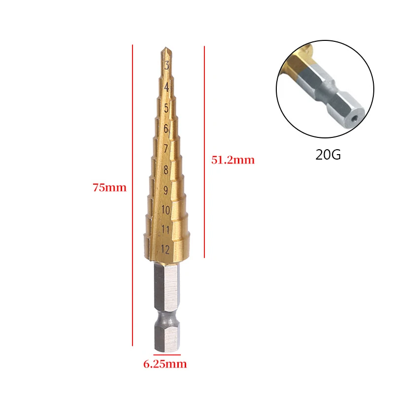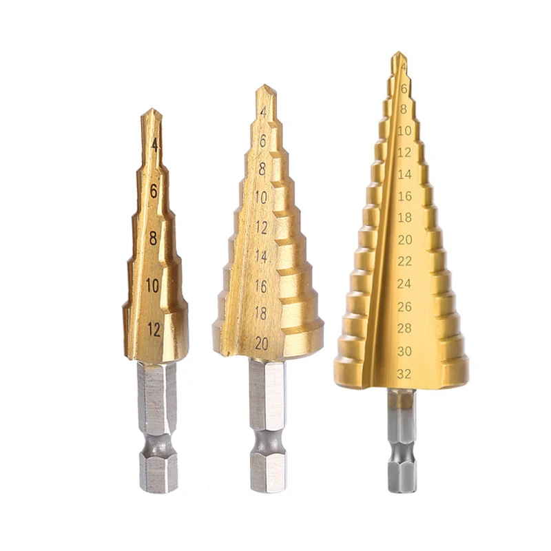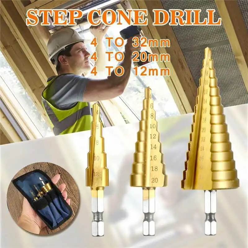 3 шт.компл. 3-12 мм 4-12 мм 4-20 мм HSS ступенчатое сверло с прямым желобом с титановым покрытием для дерева и металла, набор инструментов для сверления сердечника