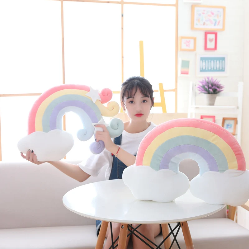 Материал: супер мягкий стрейч хлопок наполнитель: Пух хлопок размер: moon-45x20cm star-36x36cm rainbow-50x38cm cloud-53x40cm mountain-30x20cm ball-35x35cm lucky star-55x30cm shell-45x35cm Цвет: как на картинке Применение: для сна/для подарков/для украшения