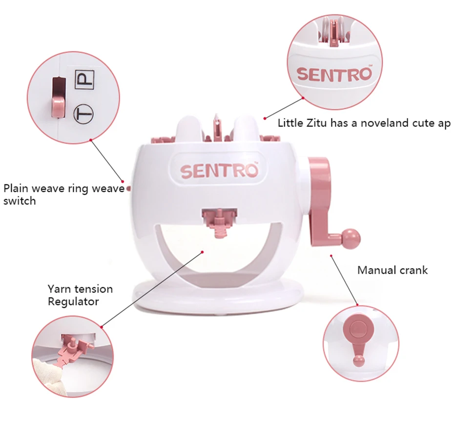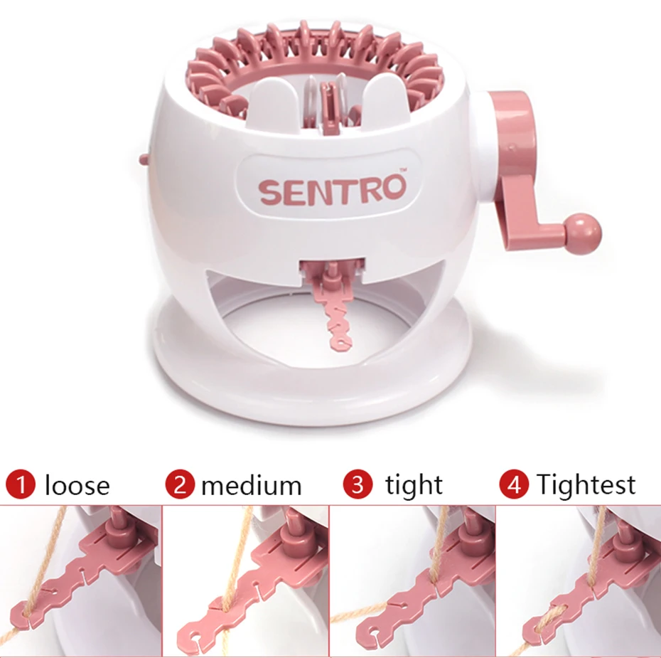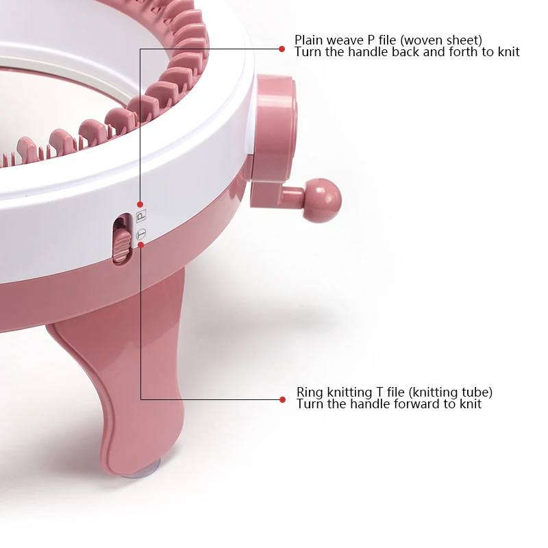 Эта ручная вязальная машина имеет двойной режим для удовлетворения различных потребностей. Т-образная петля трикотажная, после первого разворота до протечки зуба, начните вращение по часовой стрелке, чтобы сплетать цилиндрическую ткань, можно использовать как шляпу после отделки. P плоская вязка, вы можете регулировать ширину ткани в соответствии с вашими потребностями, и использовать иглу и вязание крючком, чтобы свободно сплайсинга в шарф и т. Д.