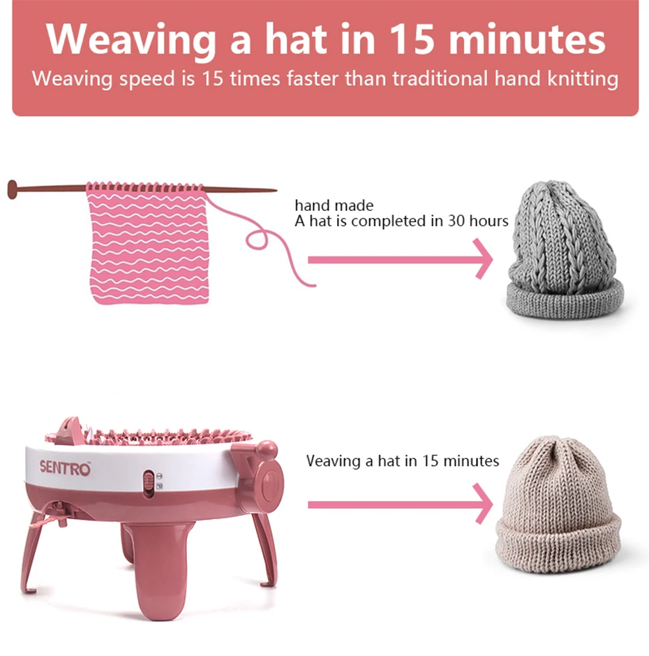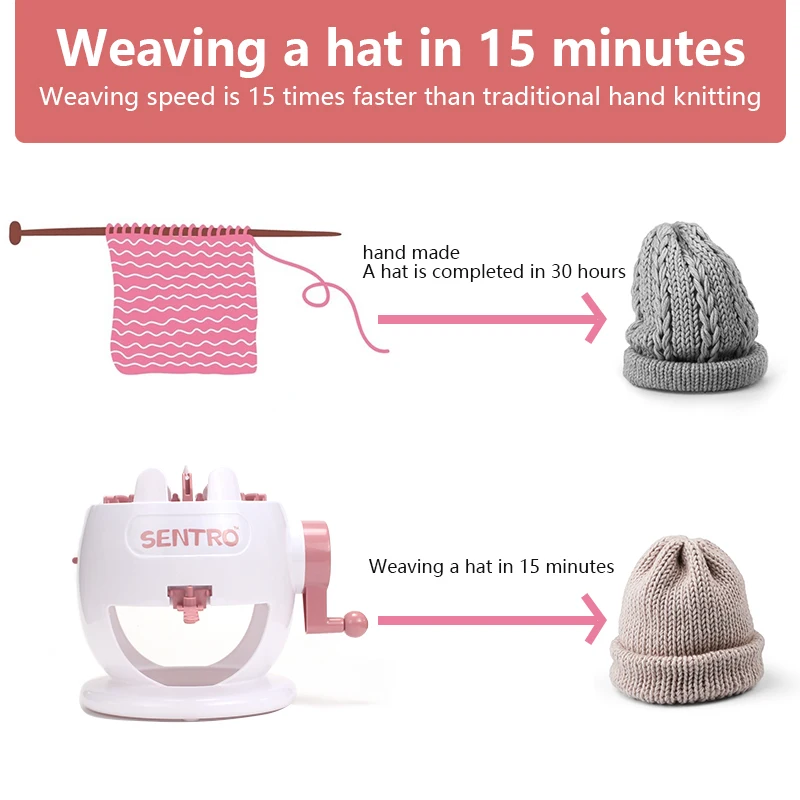 Скорость плетения в десять раз быстрее, чем традиционный метод ручного вязания. Шапка ручной вязки около 30 часов. Тканая машина используется для плетения Шляпы около 15 минут. Компактный корпус, легко носить с собой и использовать, эффект плетения хороший