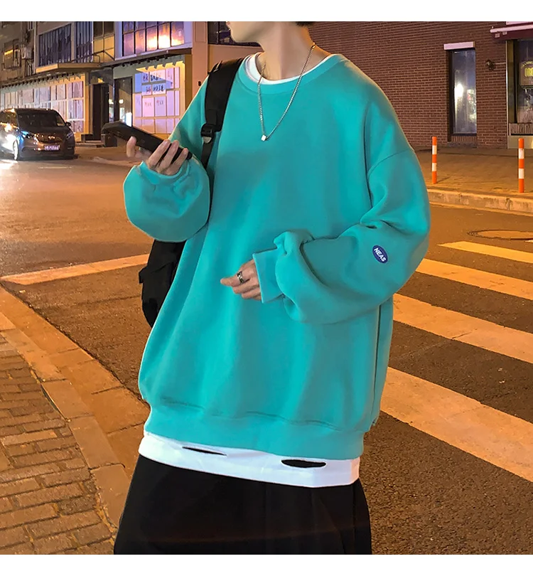 Мужской винтажный свитшот с круглым вырезом, в стиле харадзюку