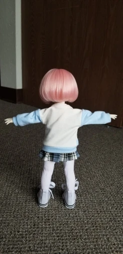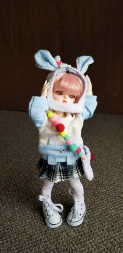 Я заказал 18 октября из США, она должна была прибыть 22 ноября, но она прибыла 8 ноября! Я хотел снять украшения для щек, и продавец мог их снять (мне не нужно было платить дополнительно). Я также убедился, что получил такой же цвет шляпы, как на фотографии. Продавец отправил фотографии куклы перед отправкой, и они быстро ответили на все мои вопросы. Эта кукла абсолютно идеальна, и я ее люблю! Я попробую добавить ее фото, как только смогу! Важно: У рубашки нет застежек на липучке или пуговиц на спине, поэтому я вставил ее ноги в отверстие рубашки. Кроме того, цвет глаз не такой, как на фотографиях (мне было сообщено об этом заранее), но я все еще люблю глаза! Вы можете увидеть швы парика на парике немного, но я не против. Она очень легко позирует!
