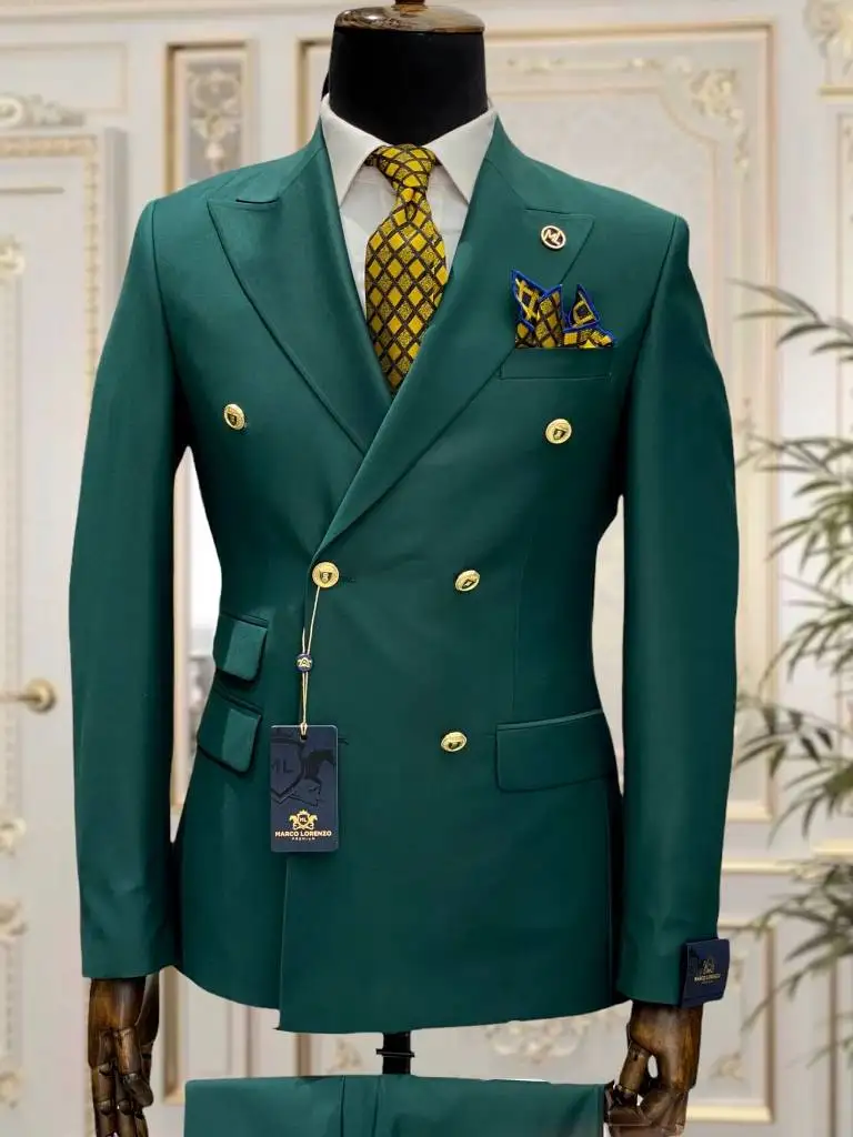 Костюм Мужской приталенный двубортный, блейзер для жениха, свадьбы, вечеринки, пиджак, костюм зеленого цвета