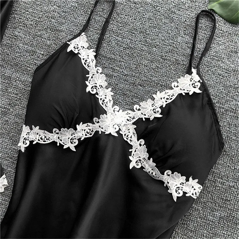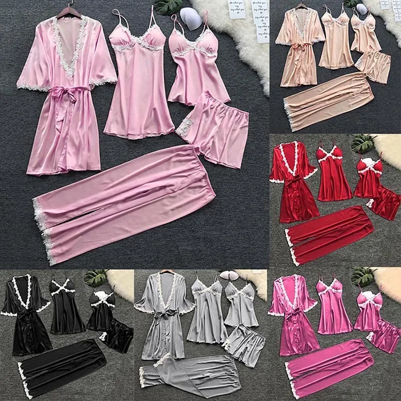 Новинка 5 шт., женские пижамные комплекты, шелковая одежда для сна, Сексуальная кружевная модная весенне-осенняя Домашняя одежда, Ночная сорочка