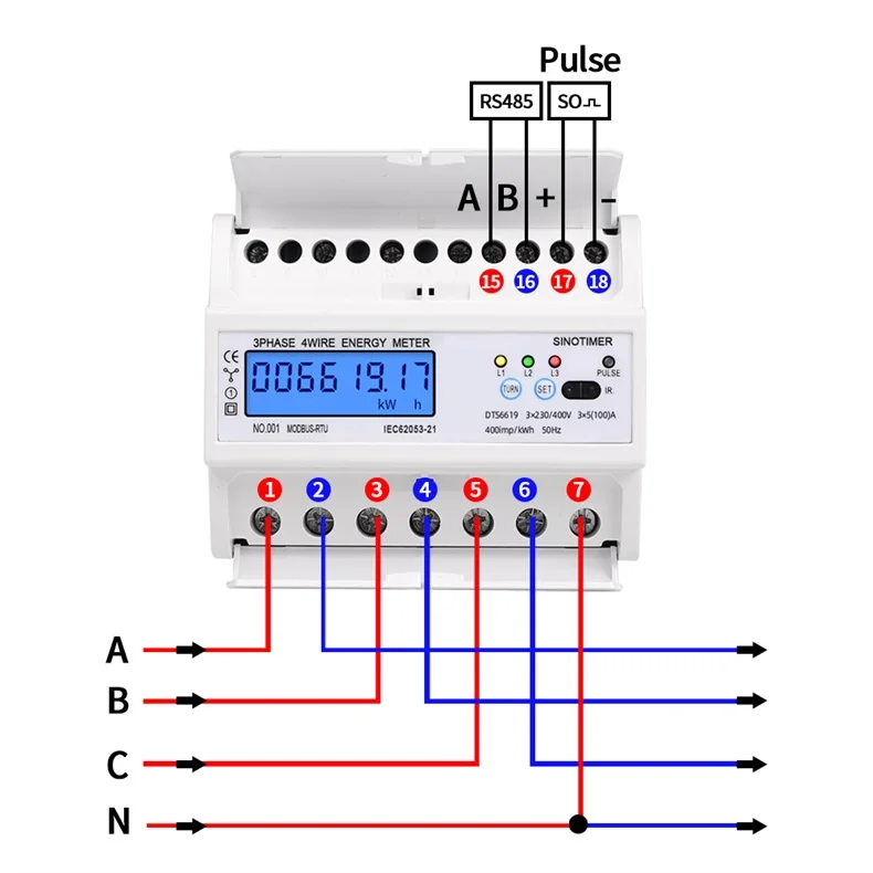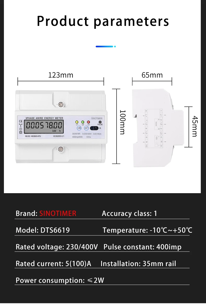 DTS6619 7P 380V 100A электронный ЖК-дисплей с подсветкой Цифровой трехфазный четырехпроводной din-рейку Ватт час счетчик энергии с RS485Параметры: